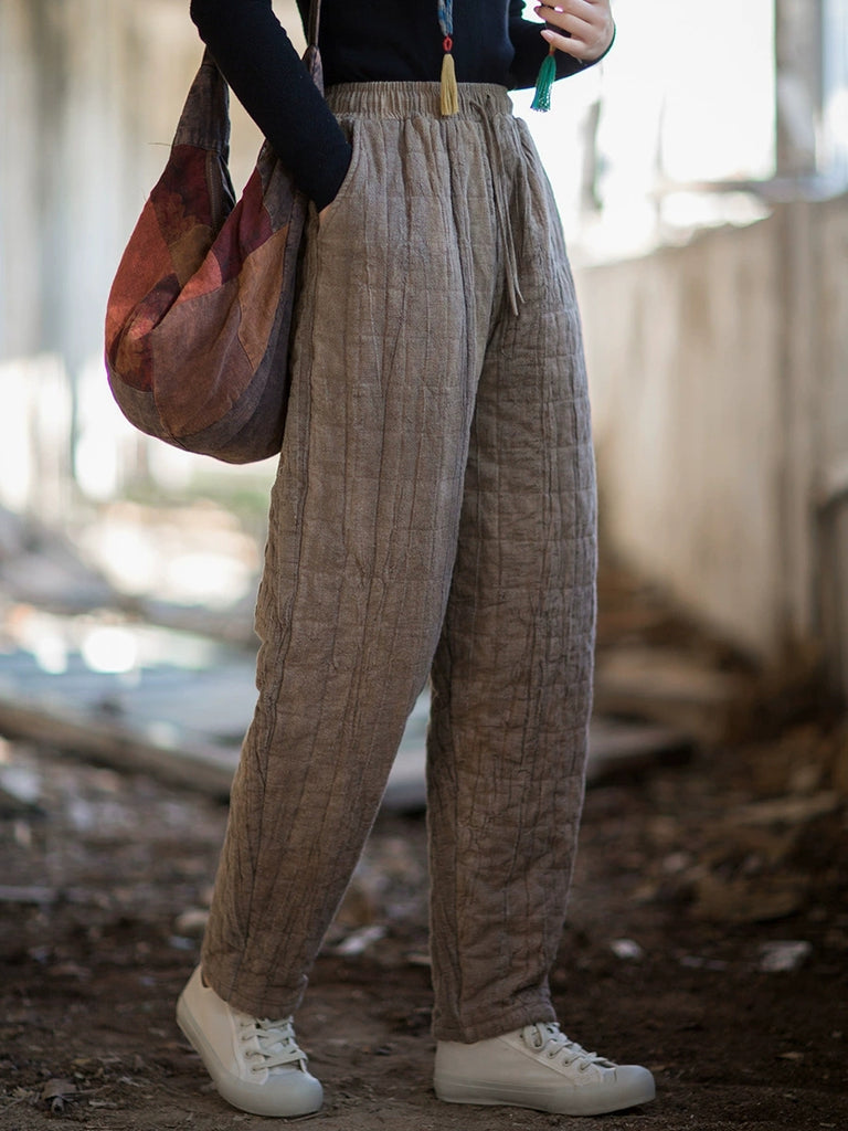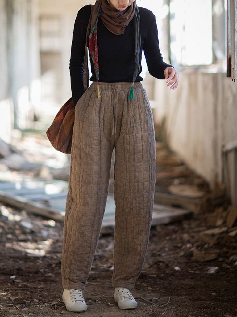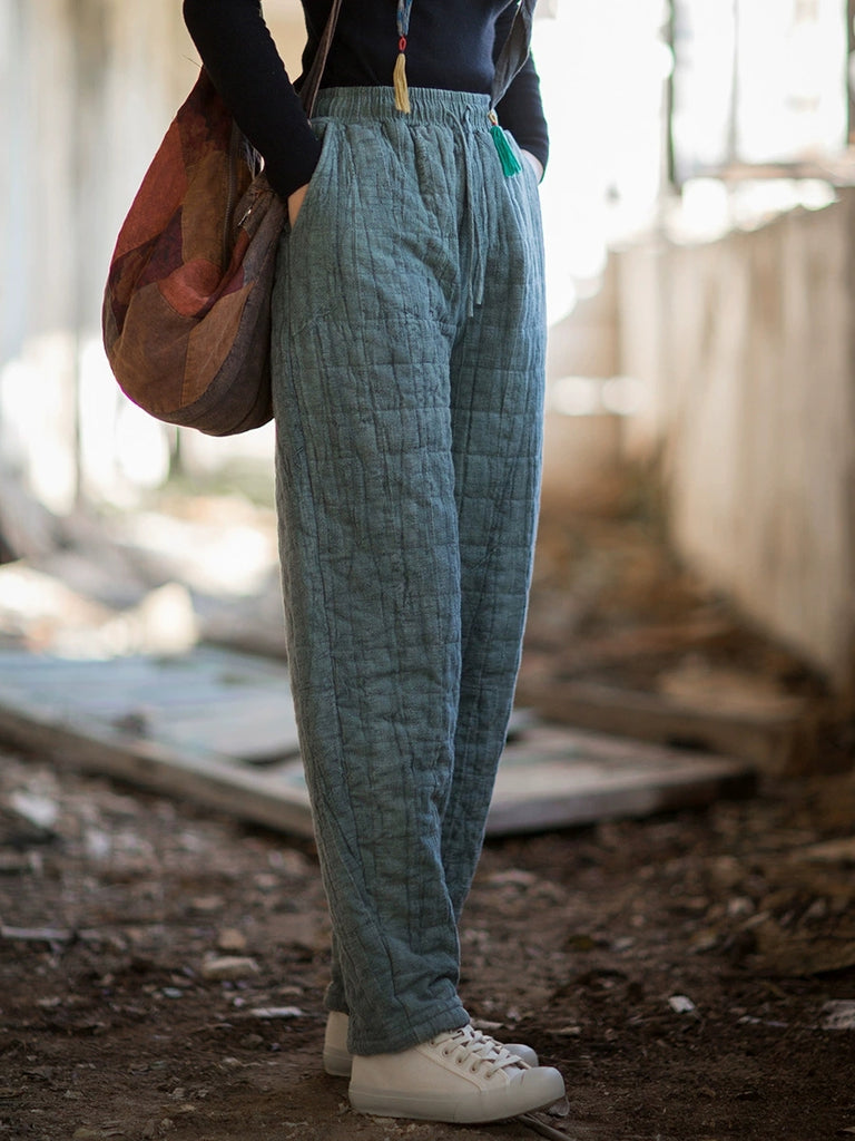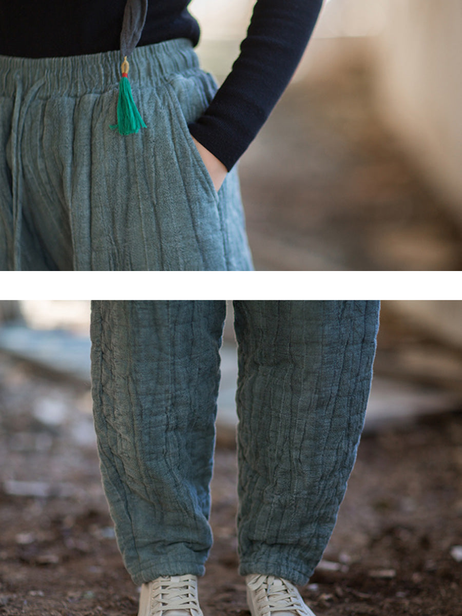 Women Winter Retro Pure Color Padded Harem Pants