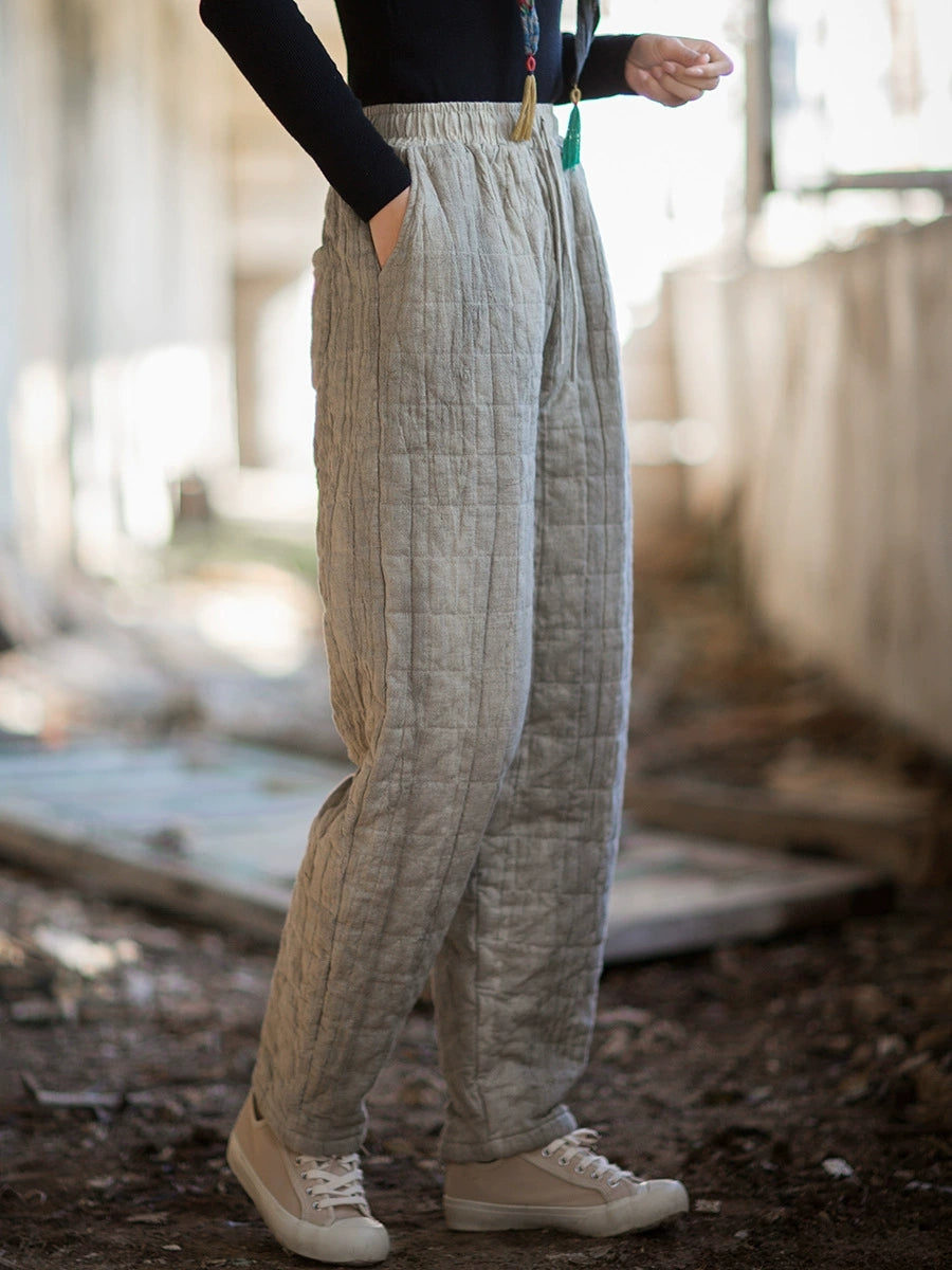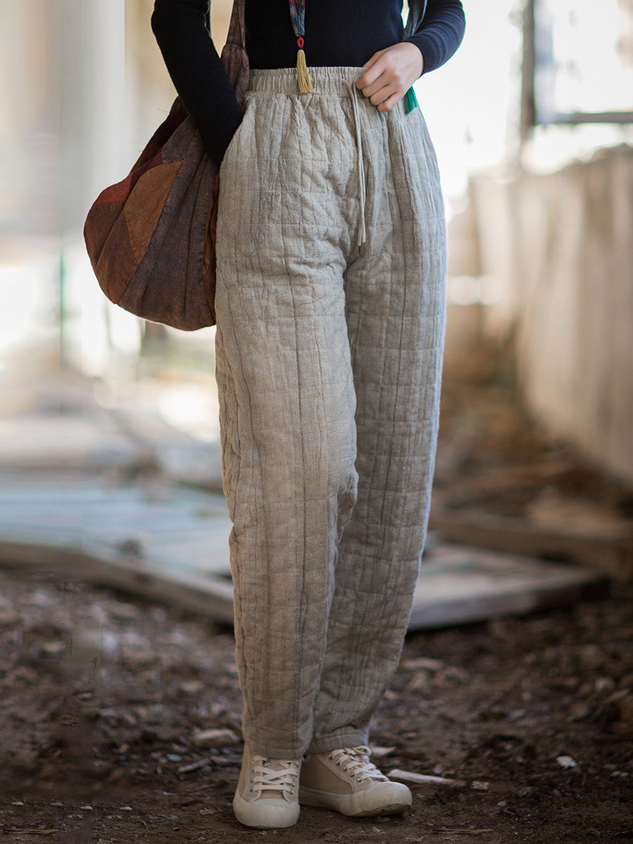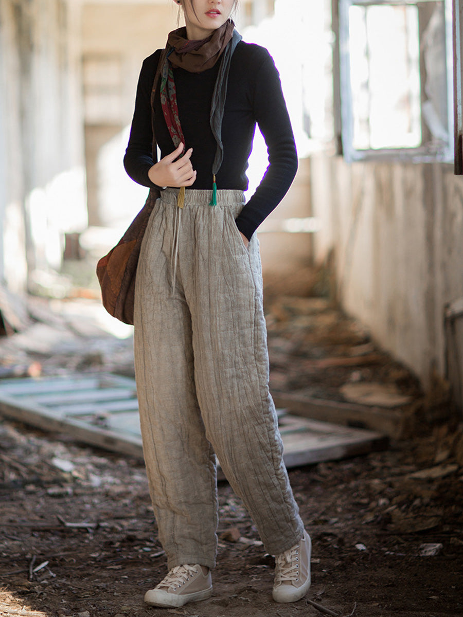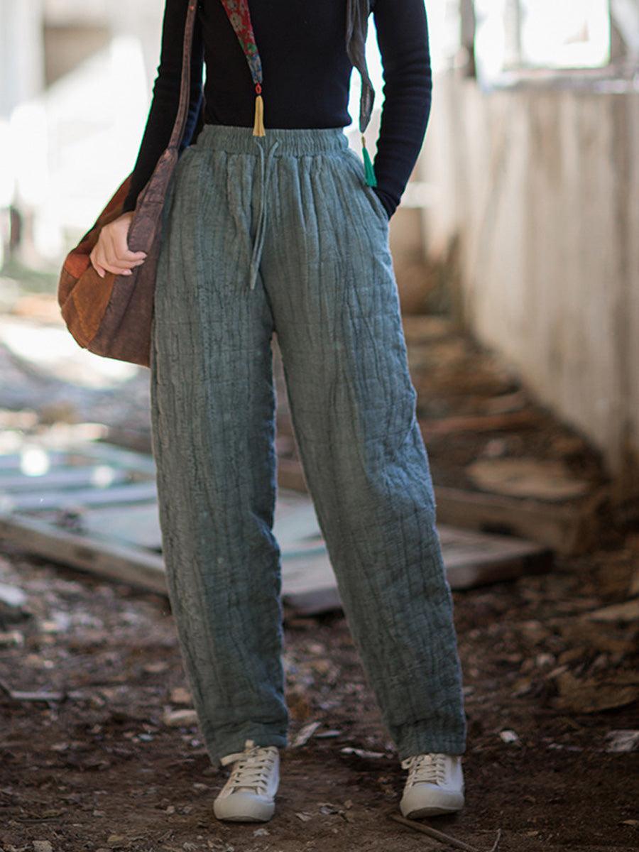 Women Winter Retro Pure Color Padded Harem Pants