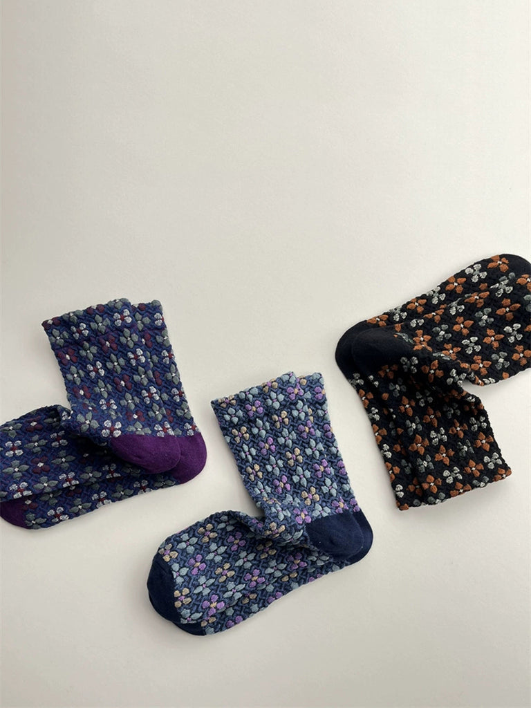 5 Pairs Women Autumn Artsy Floral Jacquard Socks