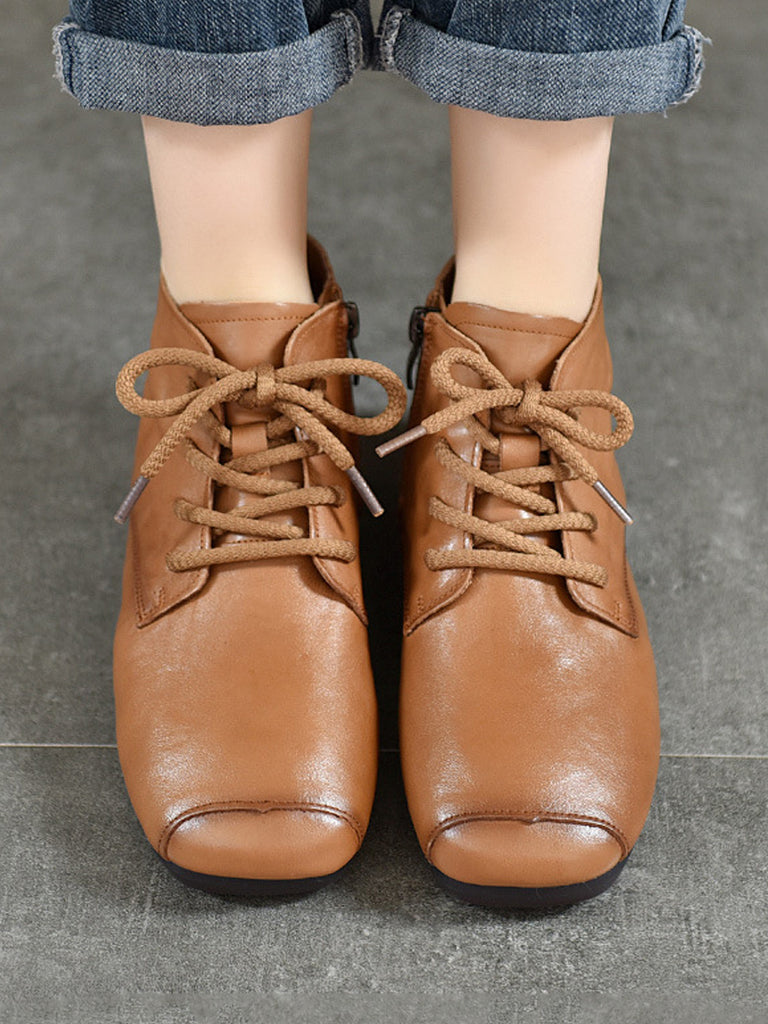 Women Autumn Genuine Leather Low Heel Ankle Boots