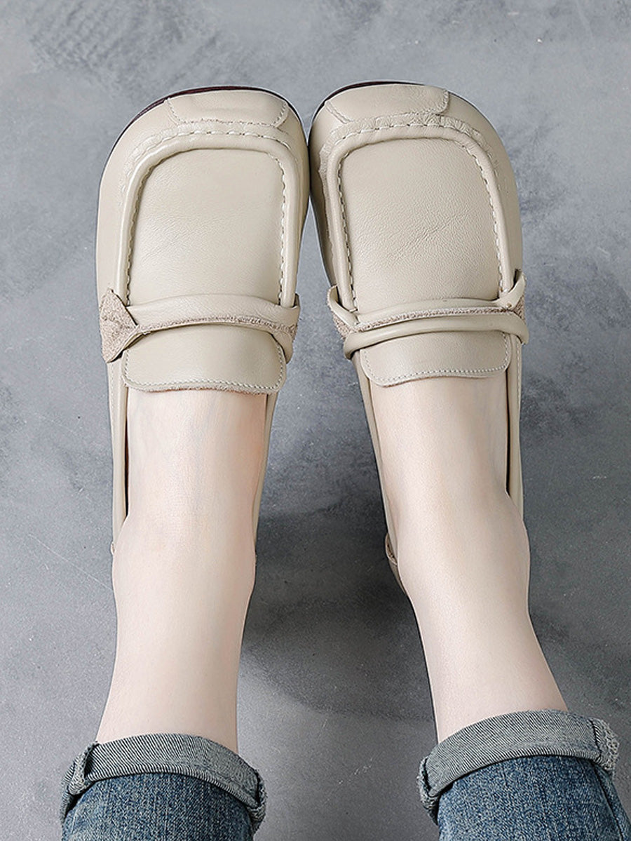 Women Spring Retro Genuine Leather Low Heel Shoes