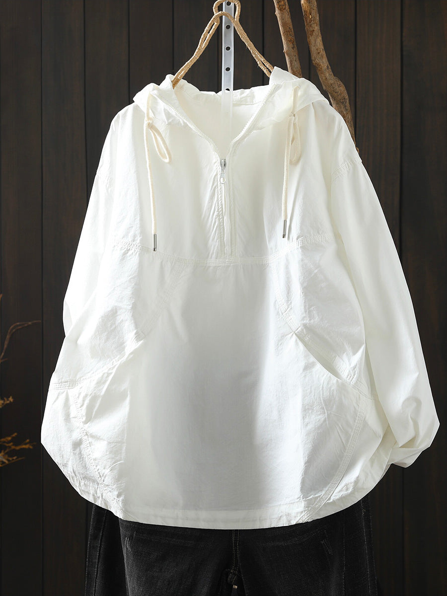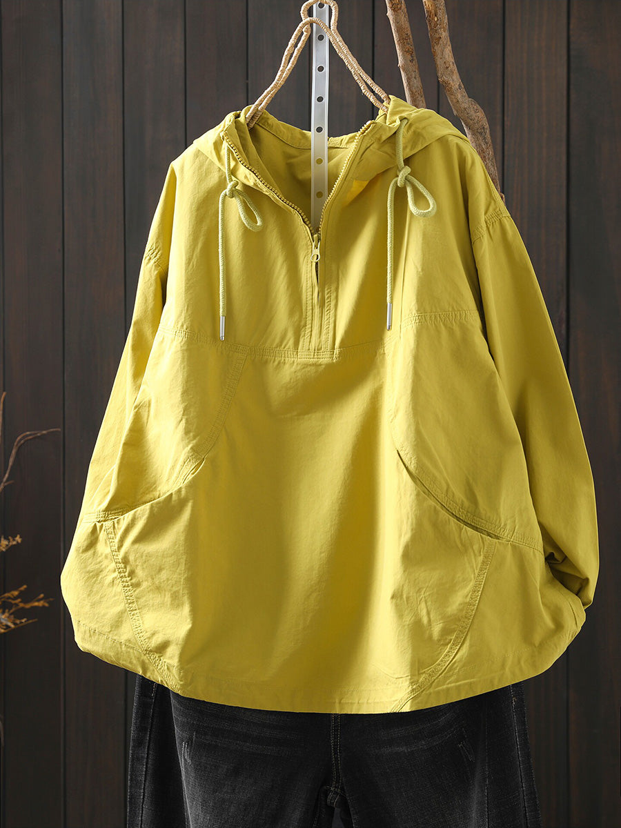 Women Spring Artsy Cotton Pure Color Hoodie