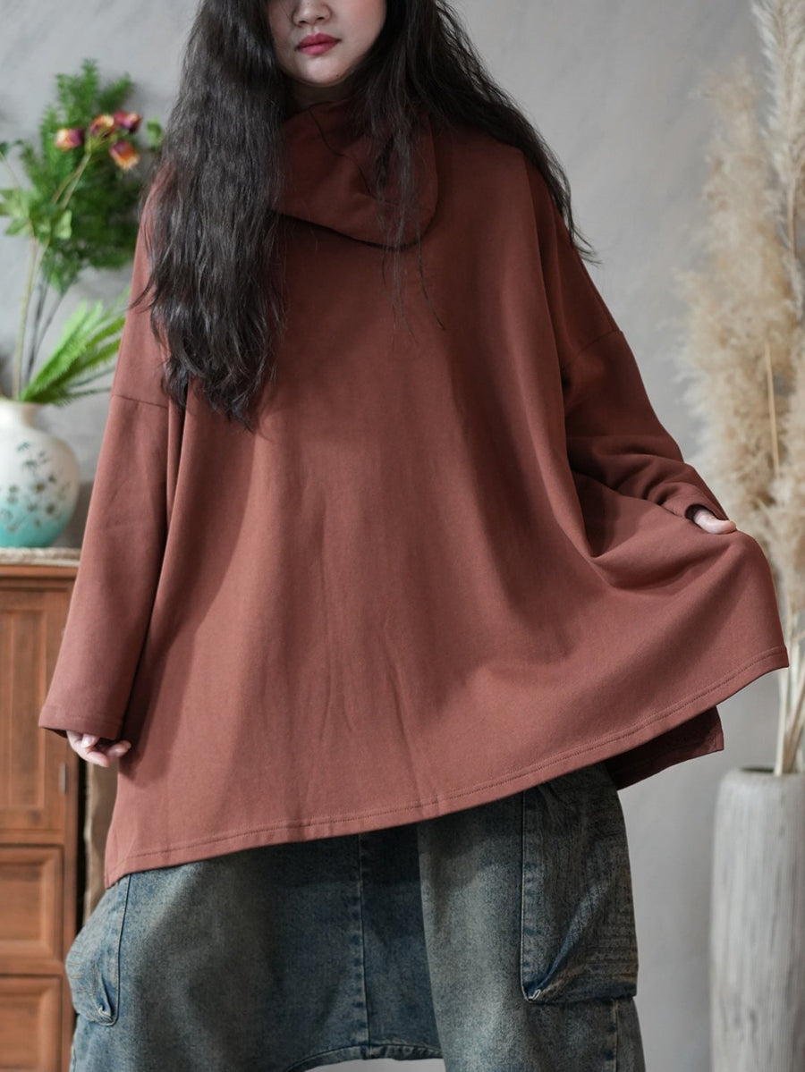 Women Spring Artsy Pure Color 100%Cotton Hoodie
