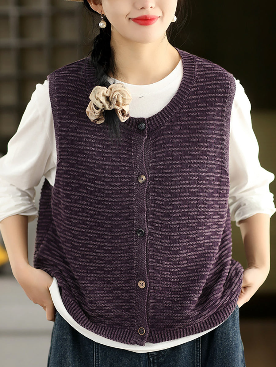 Women Spring Artsy Knitted O-Neck Vest