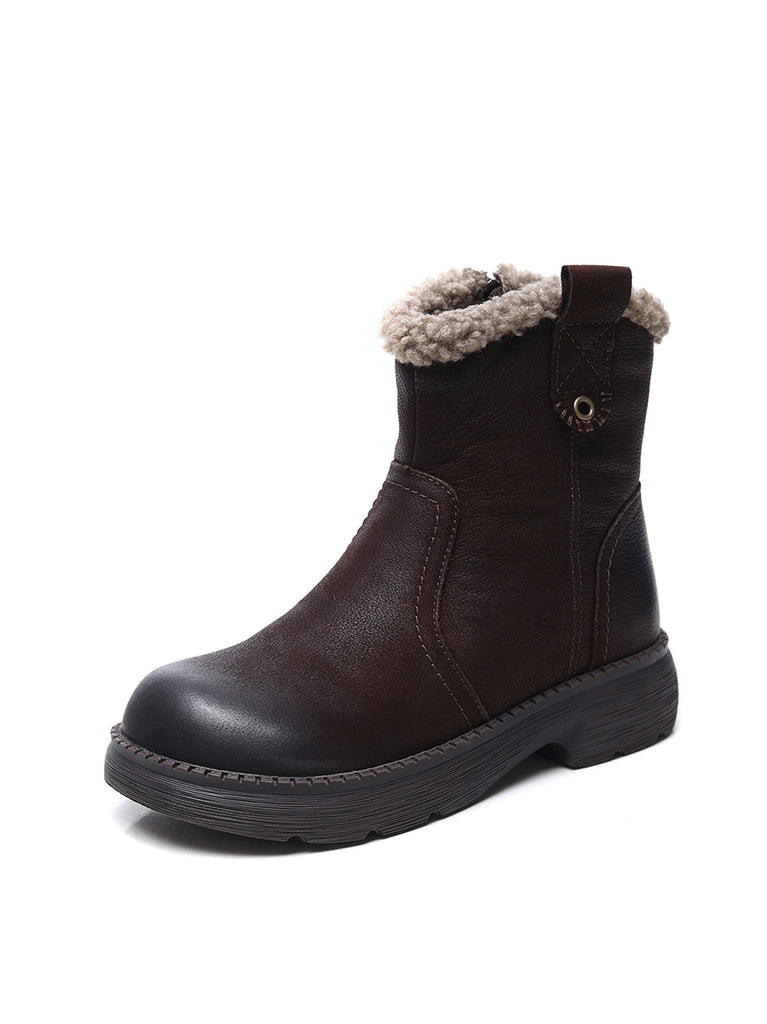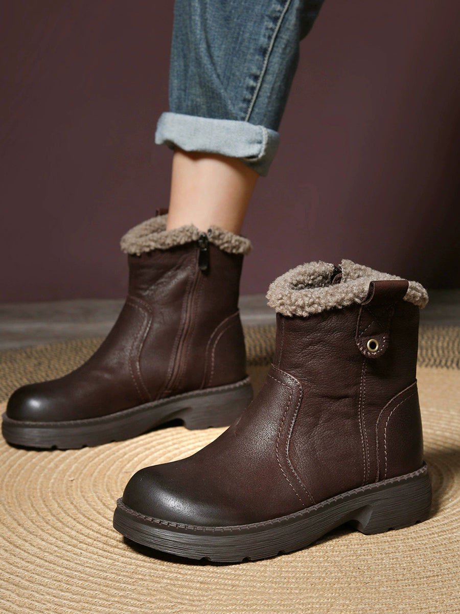Women Winter Pure Color Genuine Leather Fleece-lined Boots