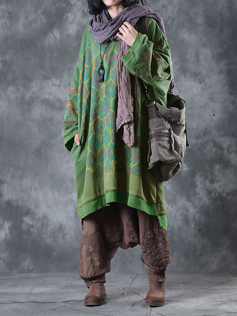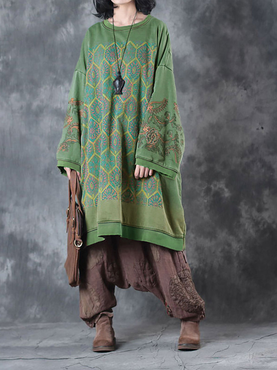 Crafted with high-quality cotton and adorned with a stunning flower pattern, this dress features a classic O-Neck collar and full raglan sleeves, perfect for the casual and cool autumn season.
