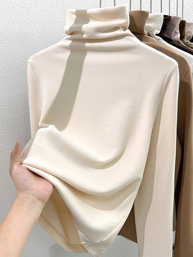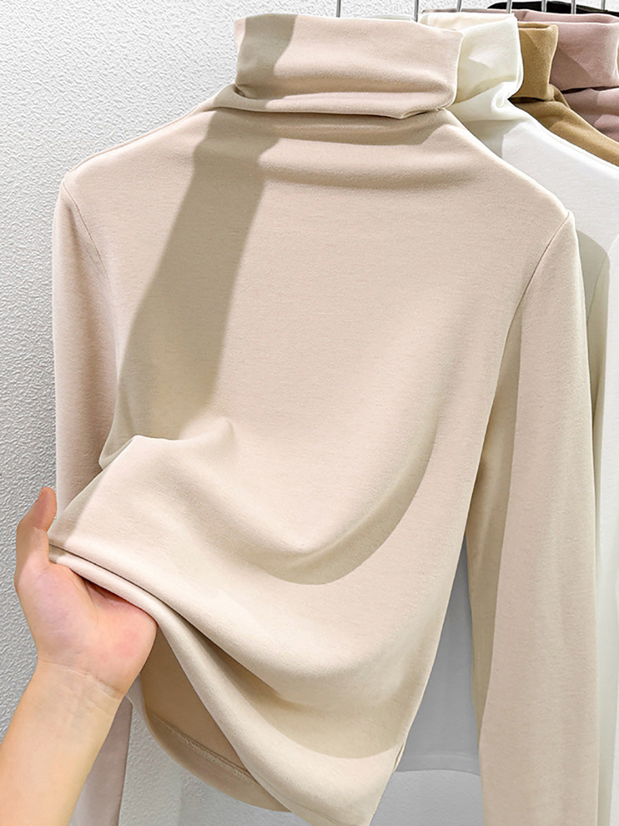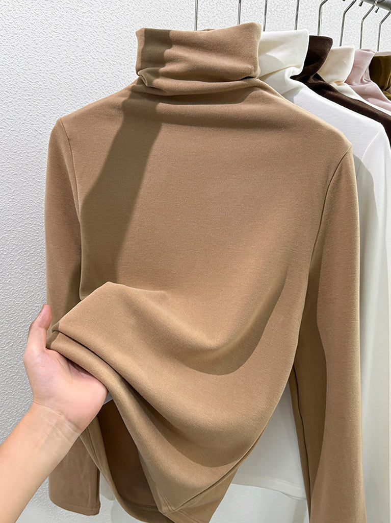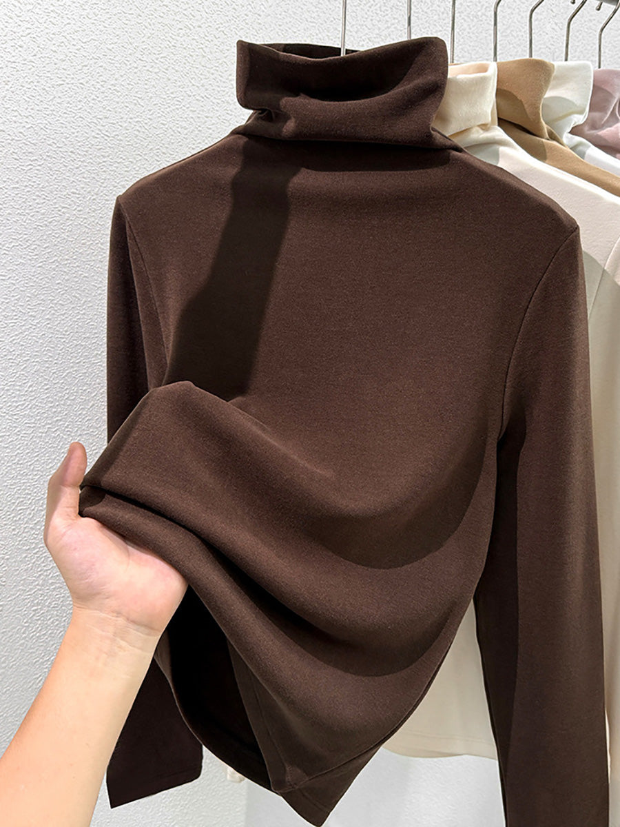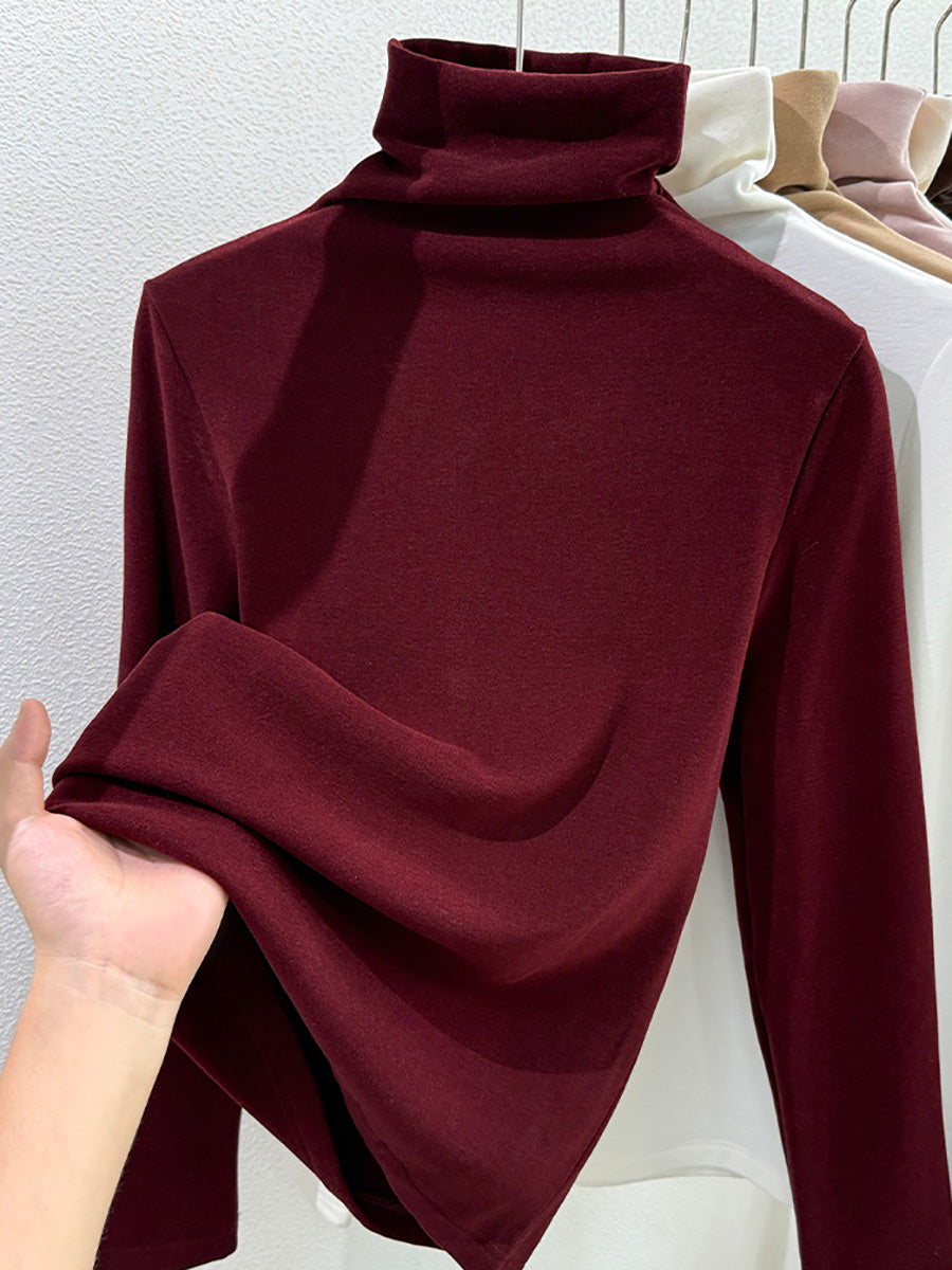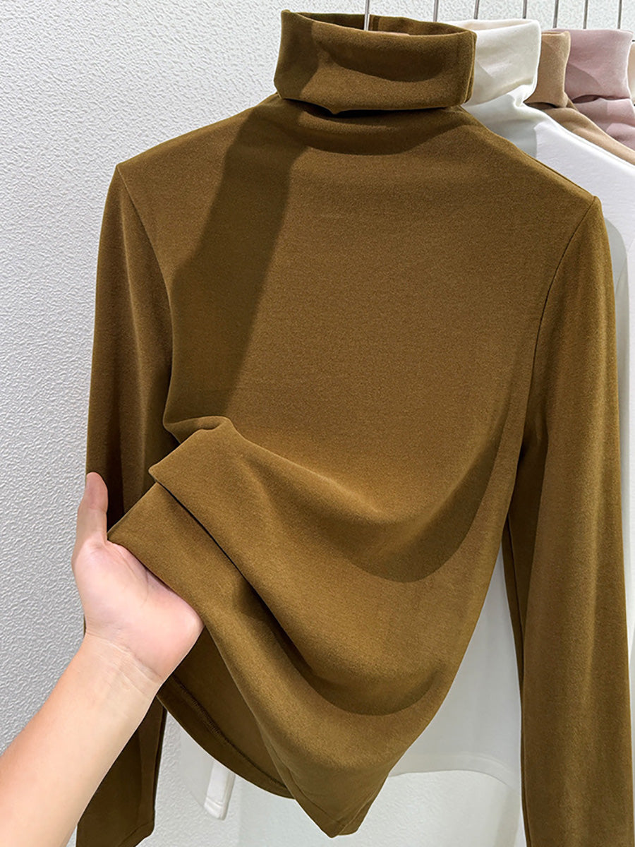 Women Winter Casual Pure Color Turtleneck Blouse