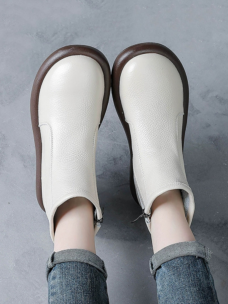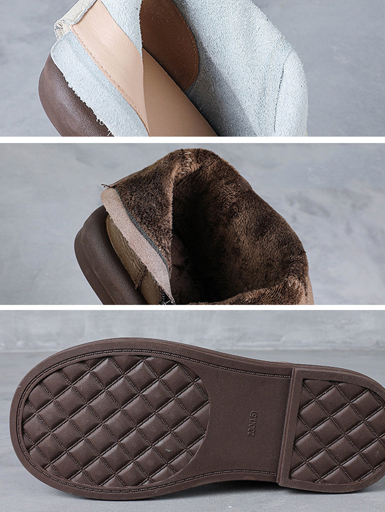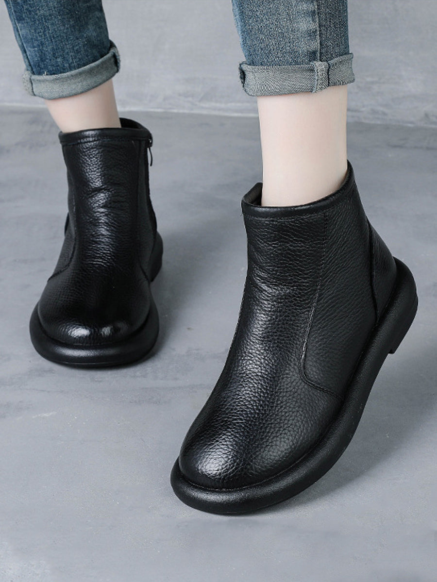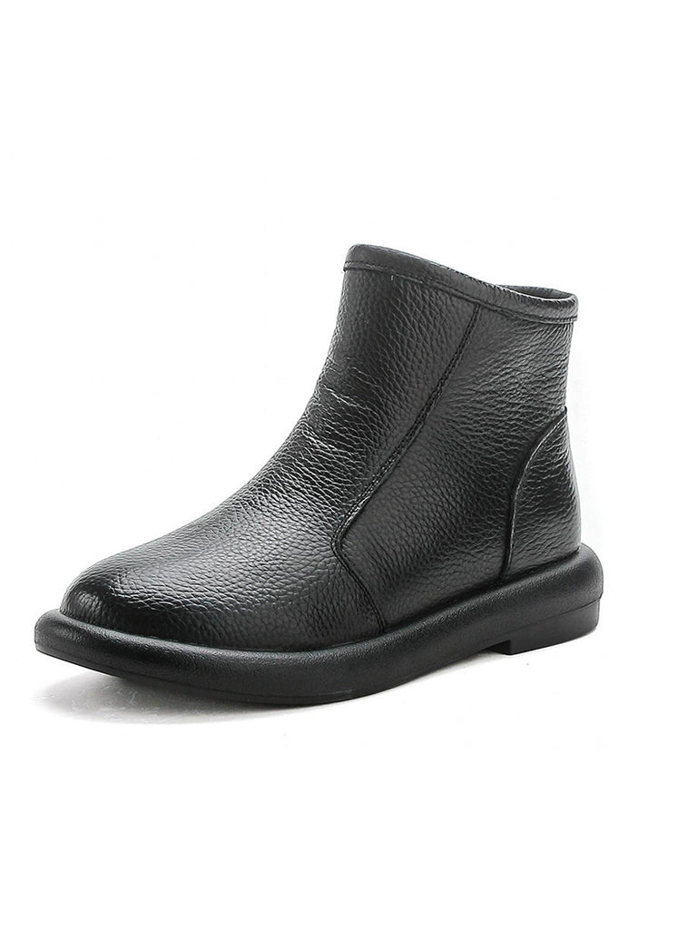 Women Winter Genuine Leather Fleece-lined Ankle Boots