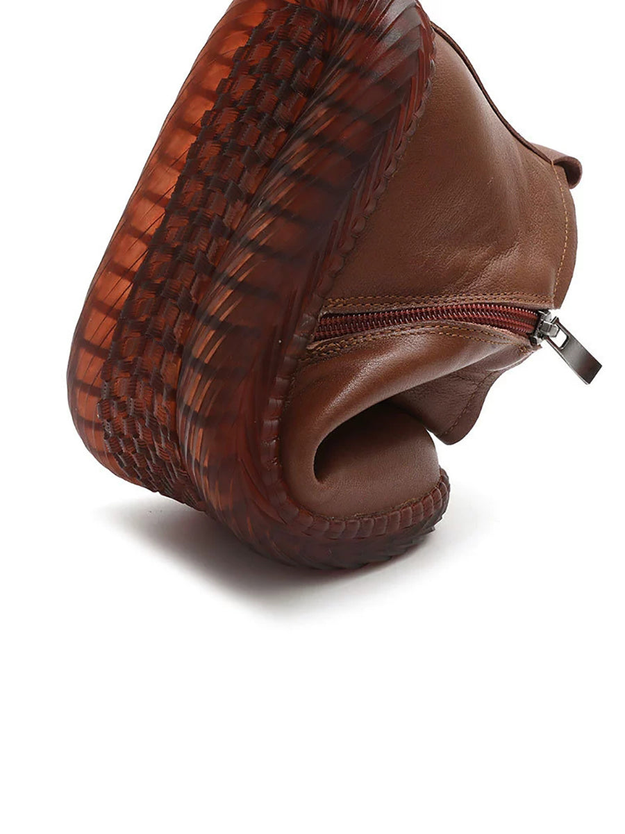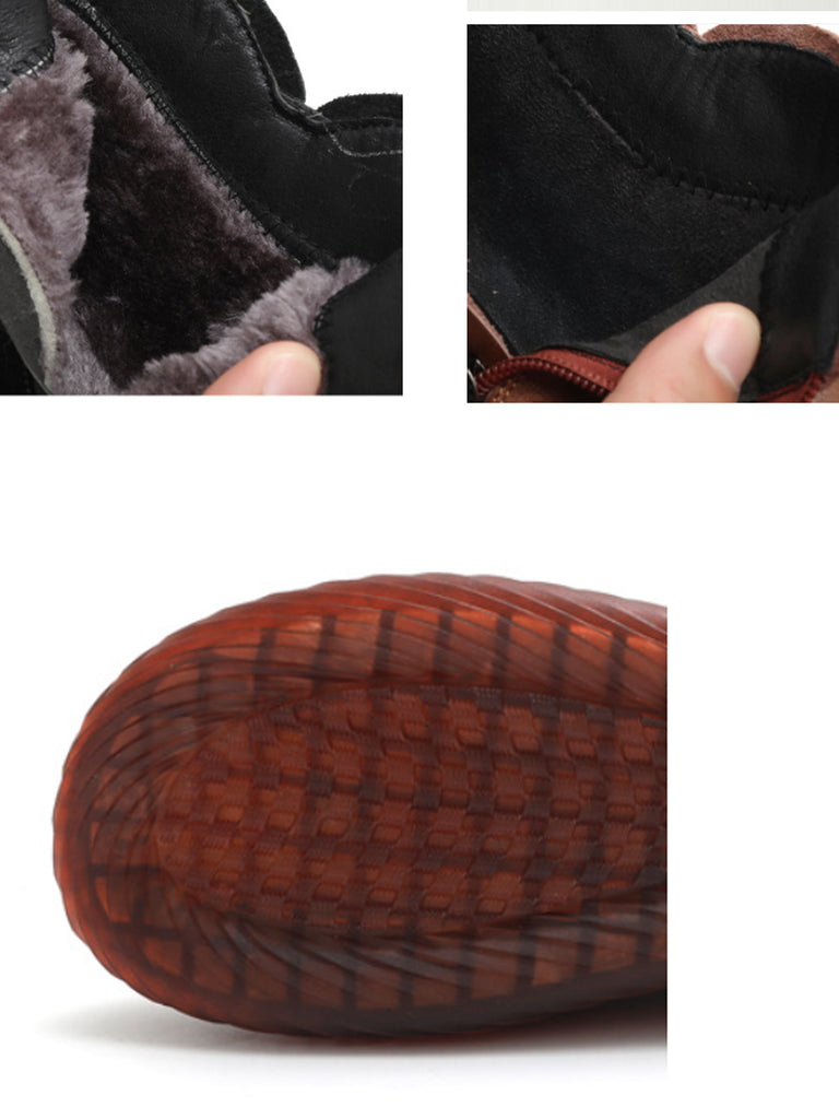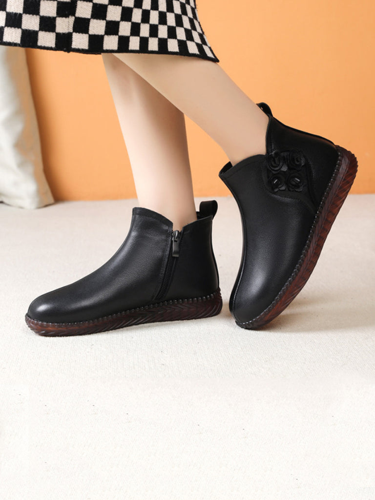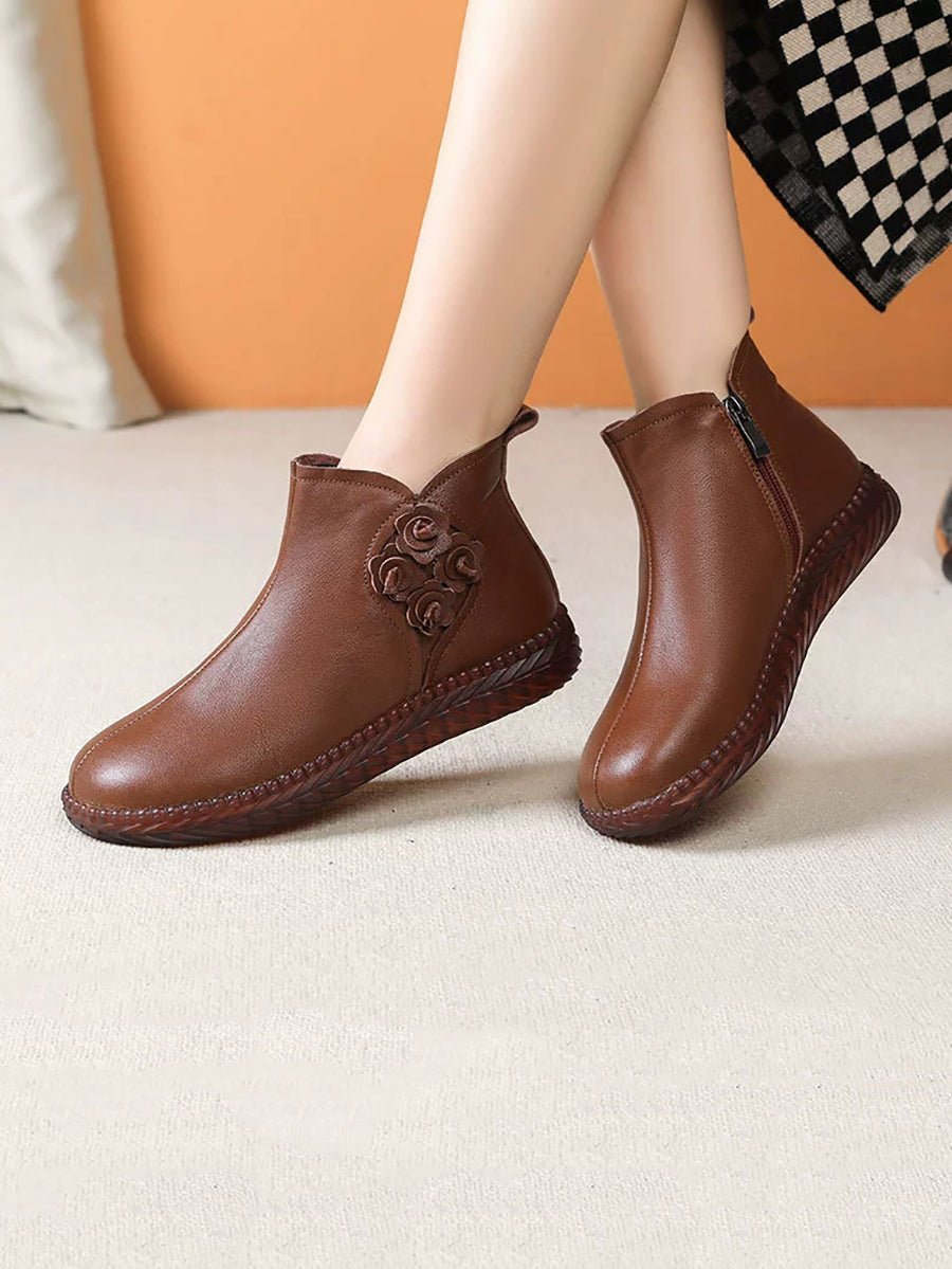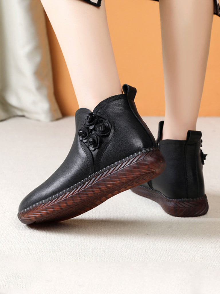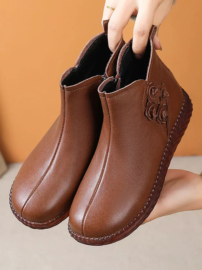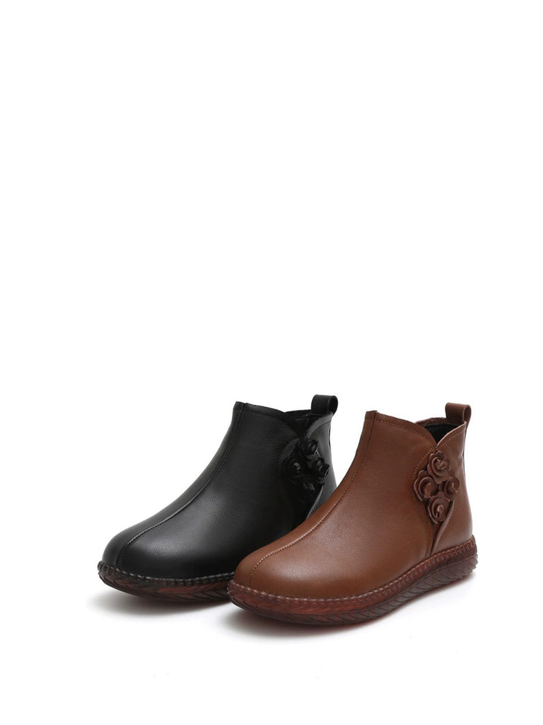 Women Winter Vintage Leather Flower Fleece-lined Boots