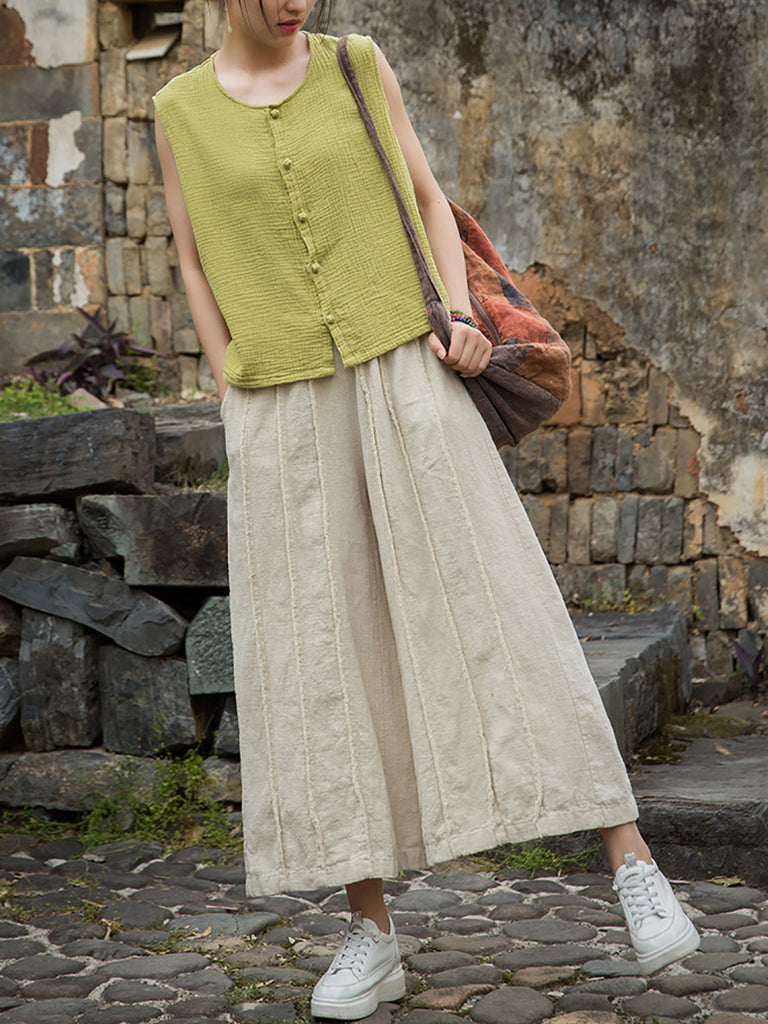 Women Summer Worn Raw-edge Ramie Wide-leg Pants