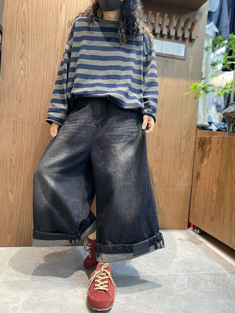 Women Autumn Casual Stripe Cotton O-Neck Shirt