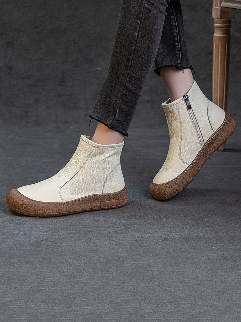 Women Genuine Leather Zipper Flat Ankle Boots