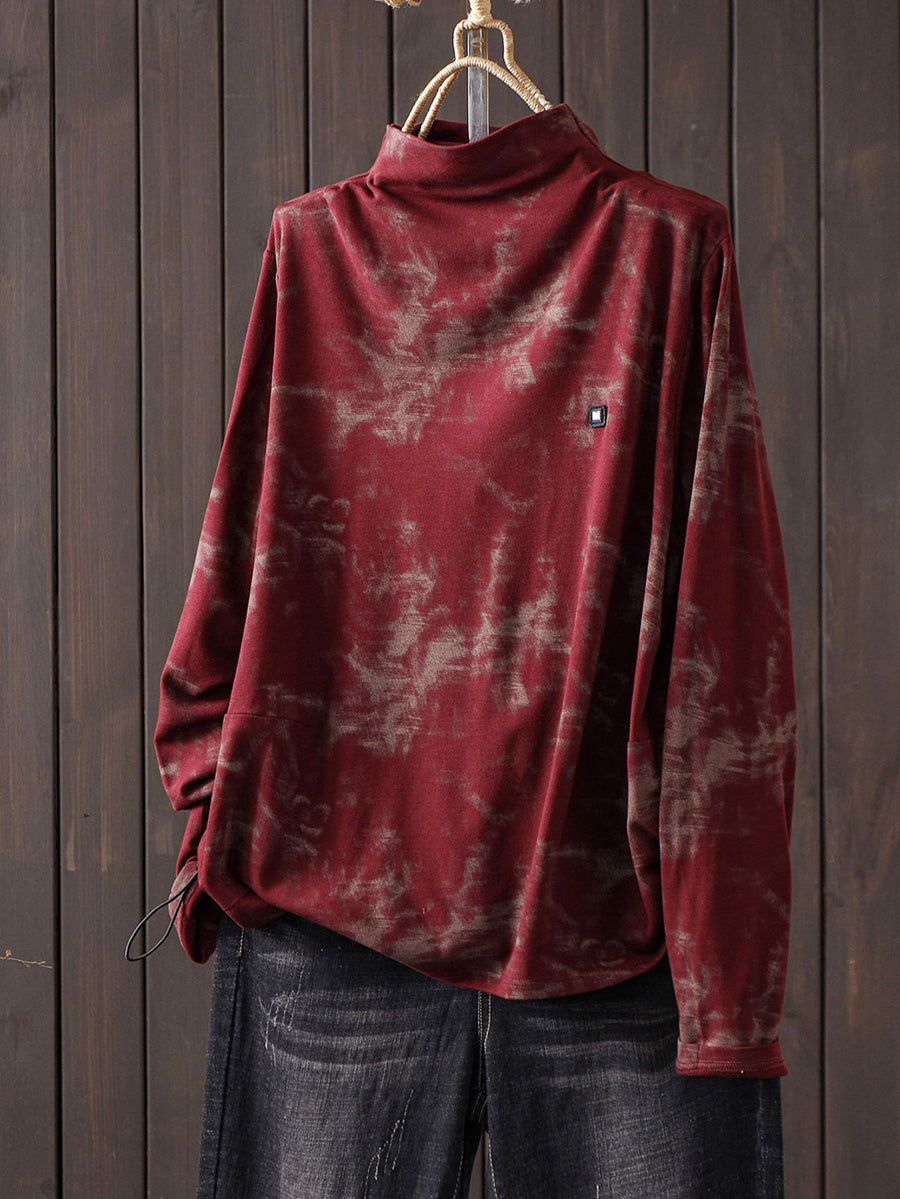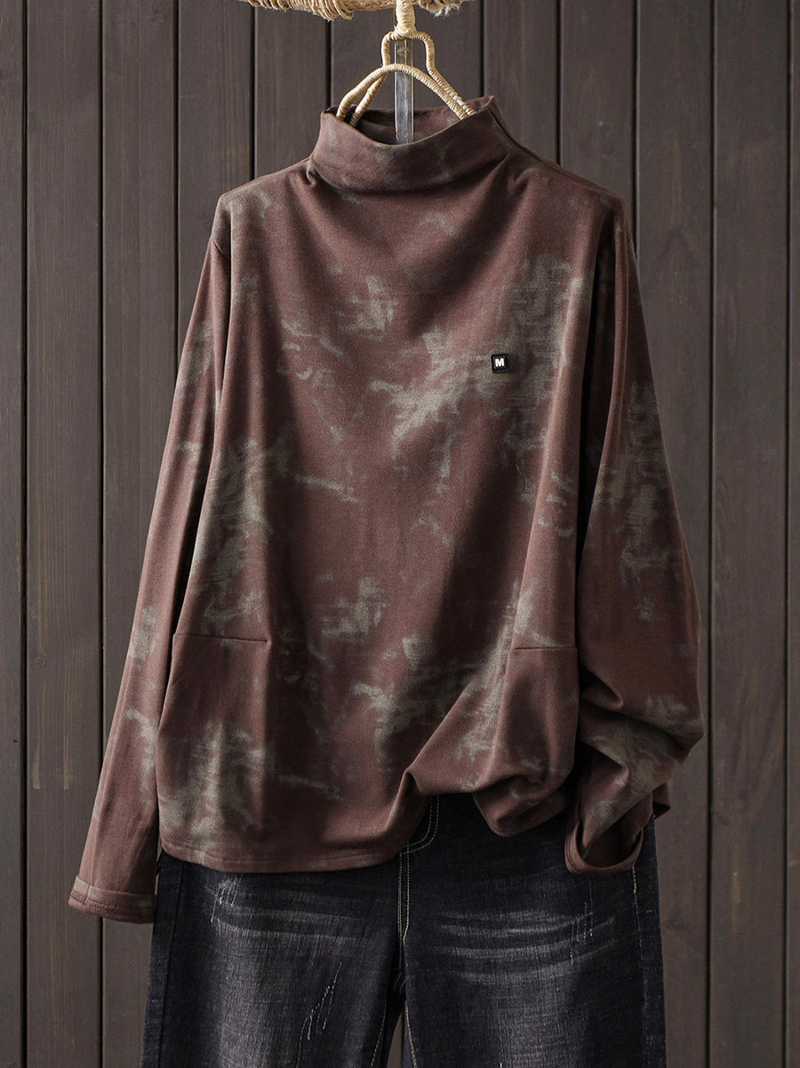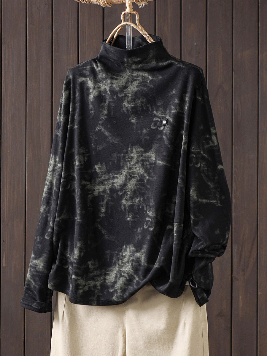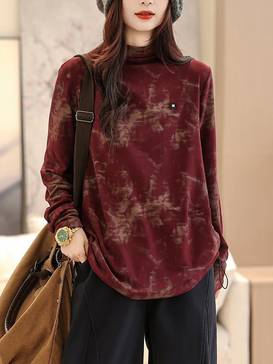 Women Autumn Tie-dye Half-Turtleneck Bottom Blouse