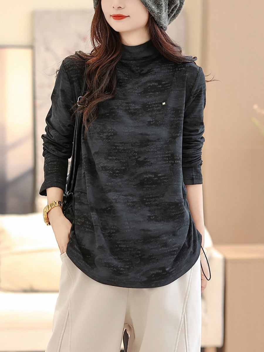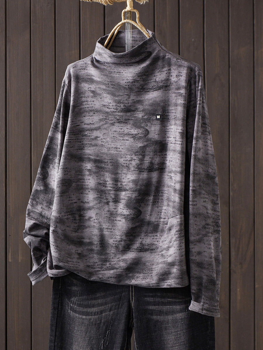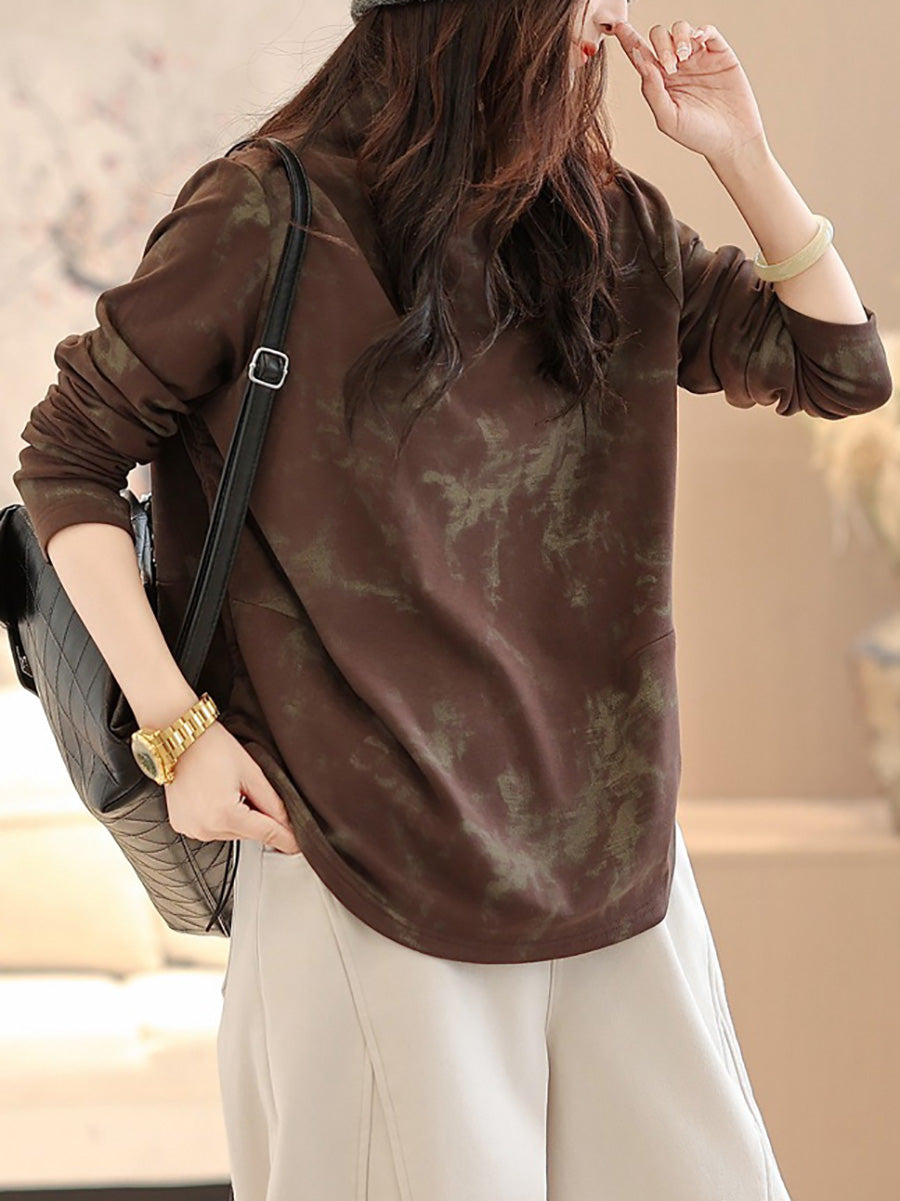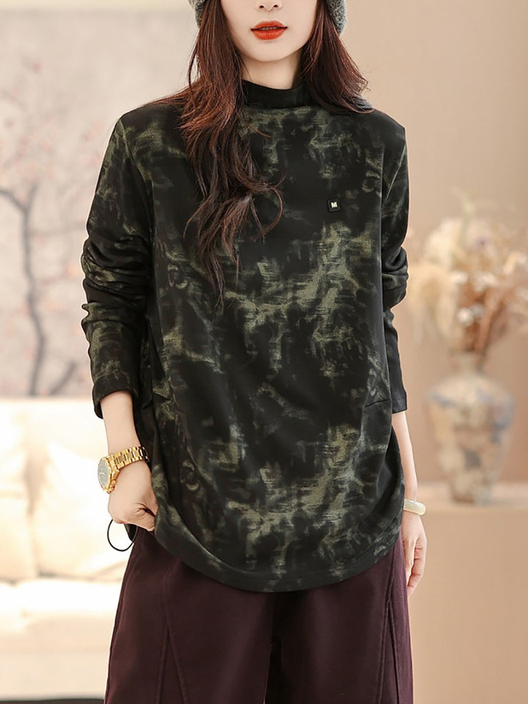 Women Autumn Tie-dye Half-Turtleneck Bottom Blouse