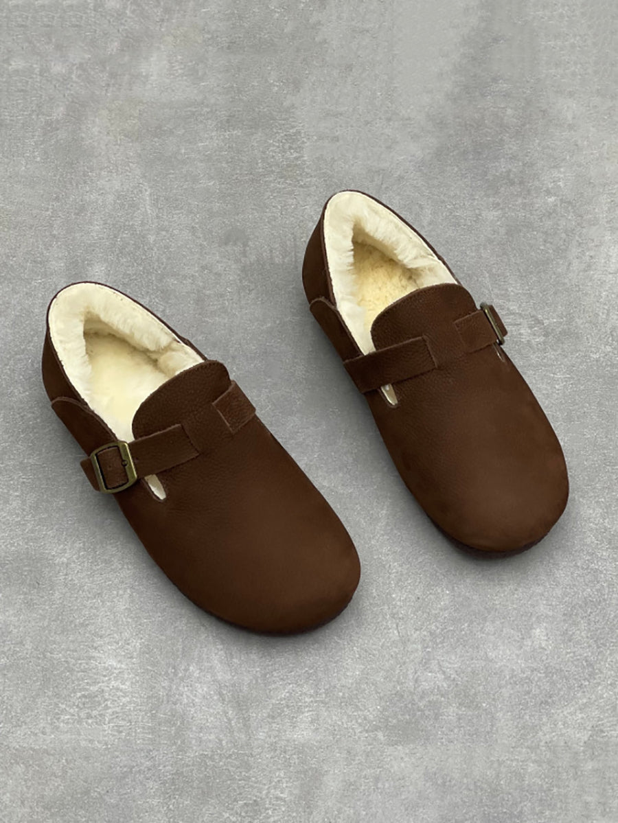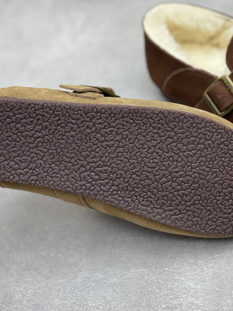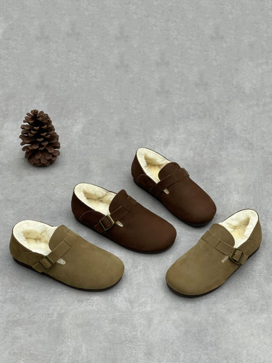 Women Winter Pure Color Leather Fleece-lined Shoes