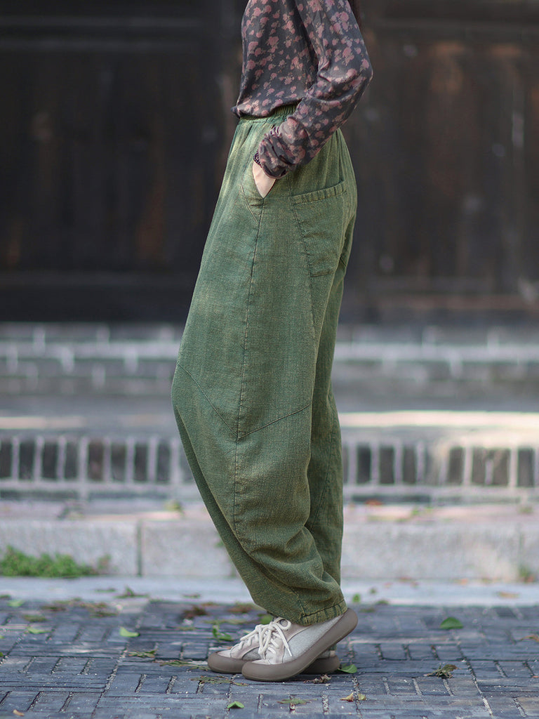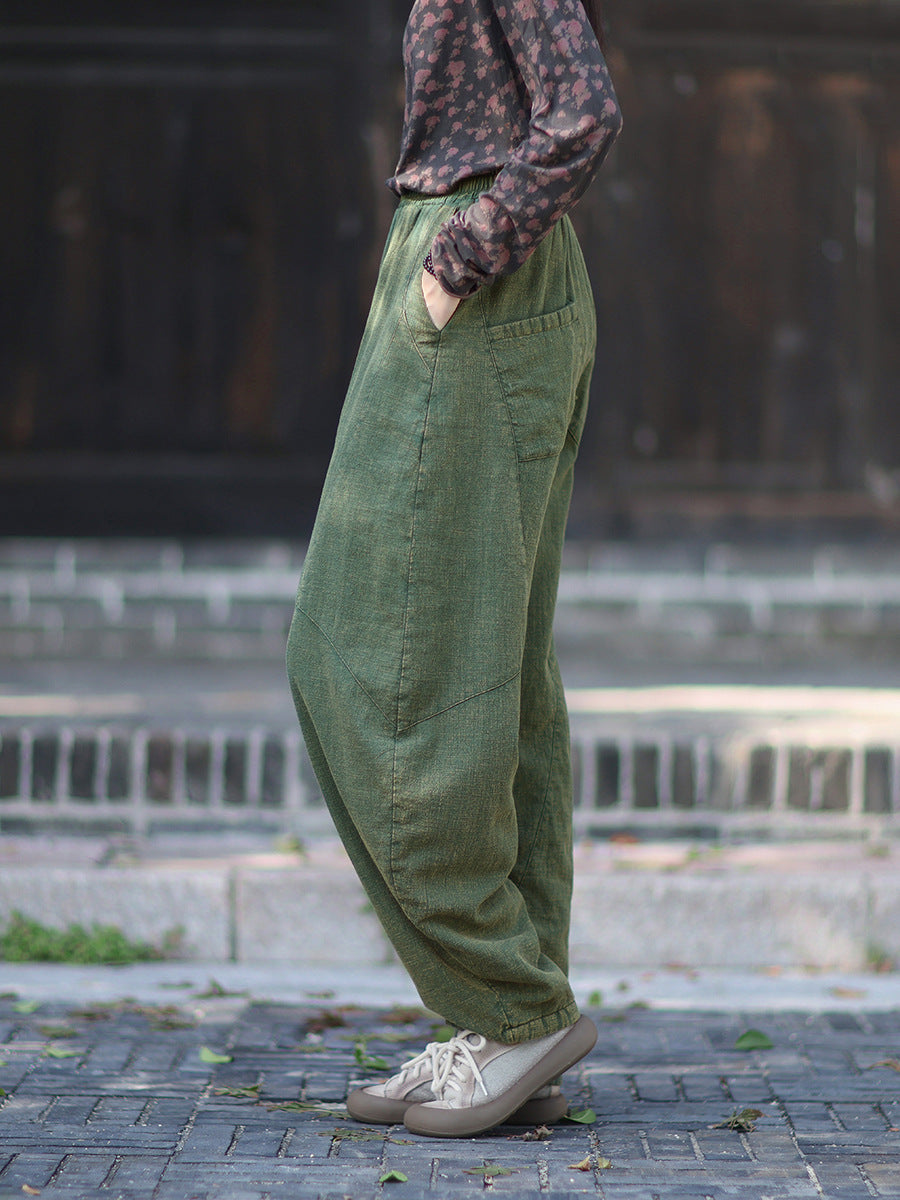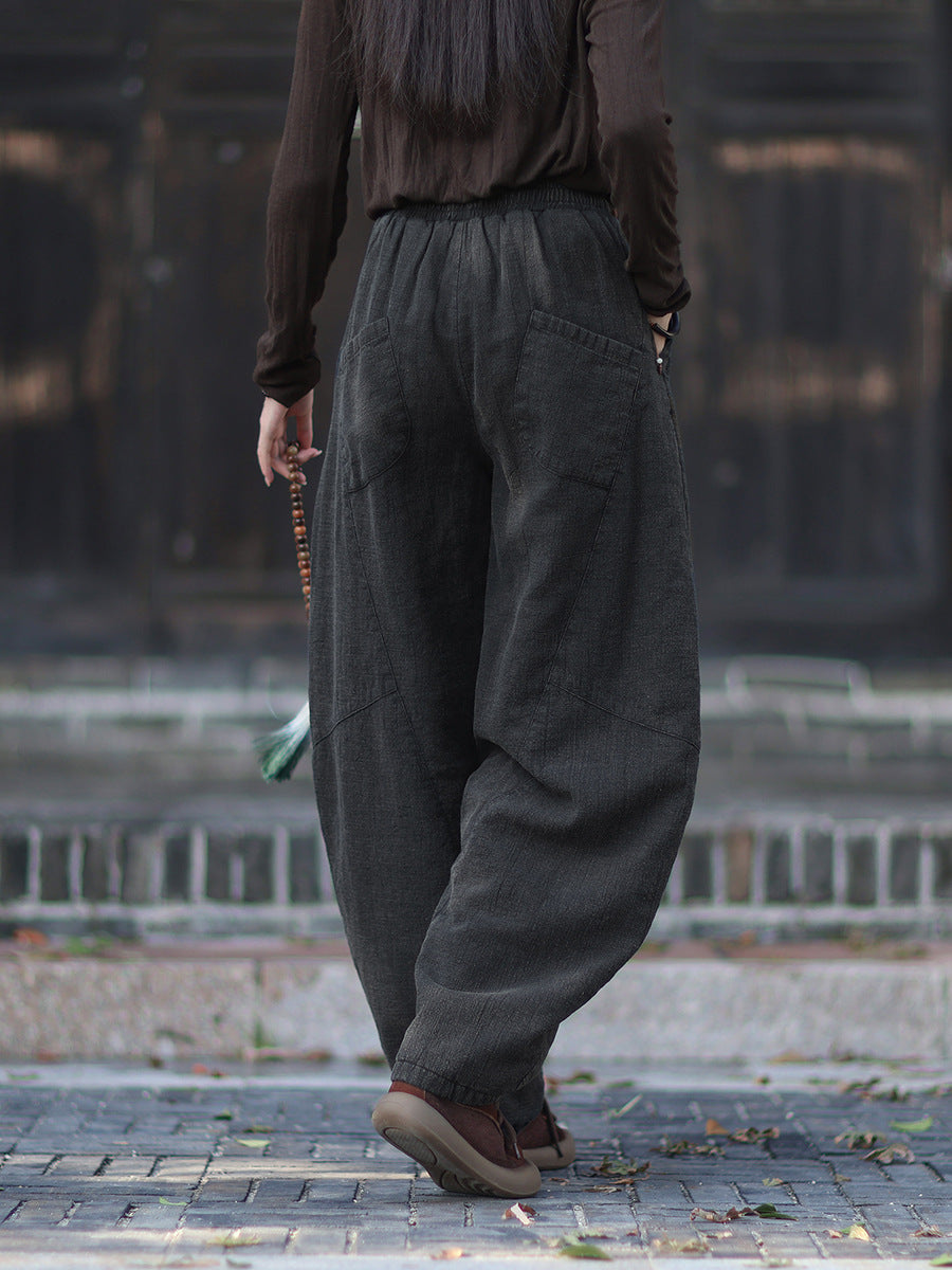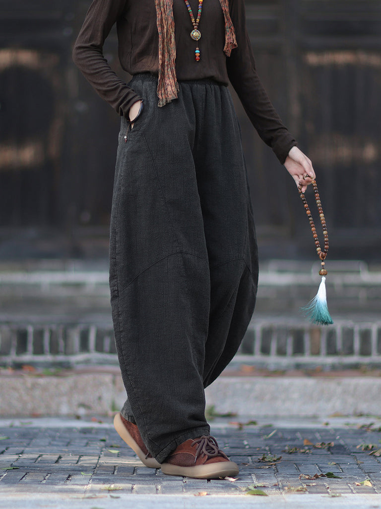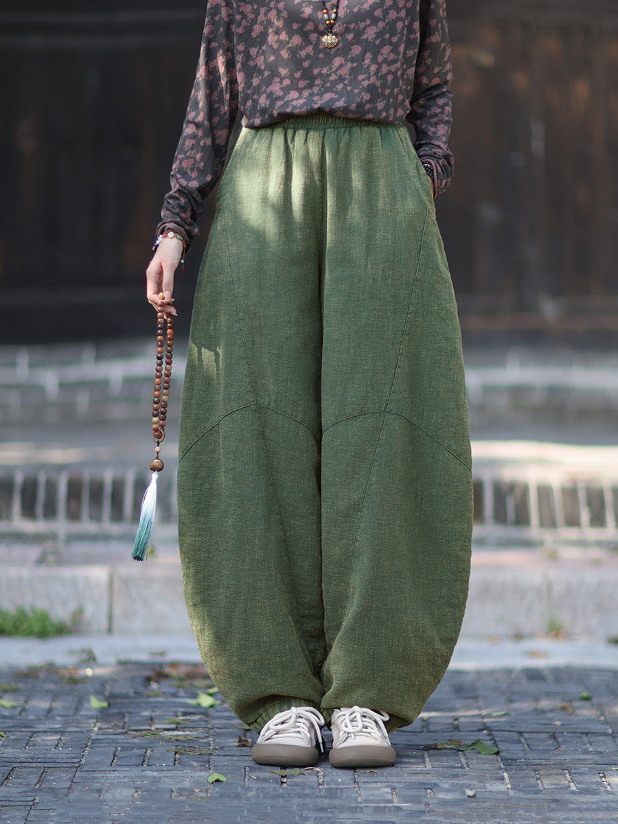 Women Winter Retro Pure Color Padded Harem Pants