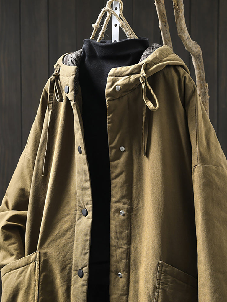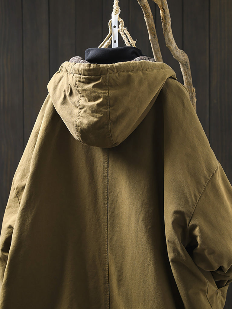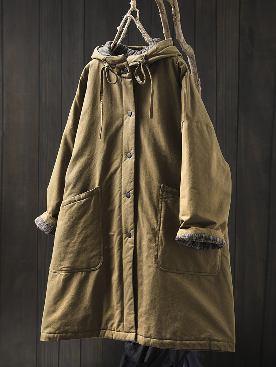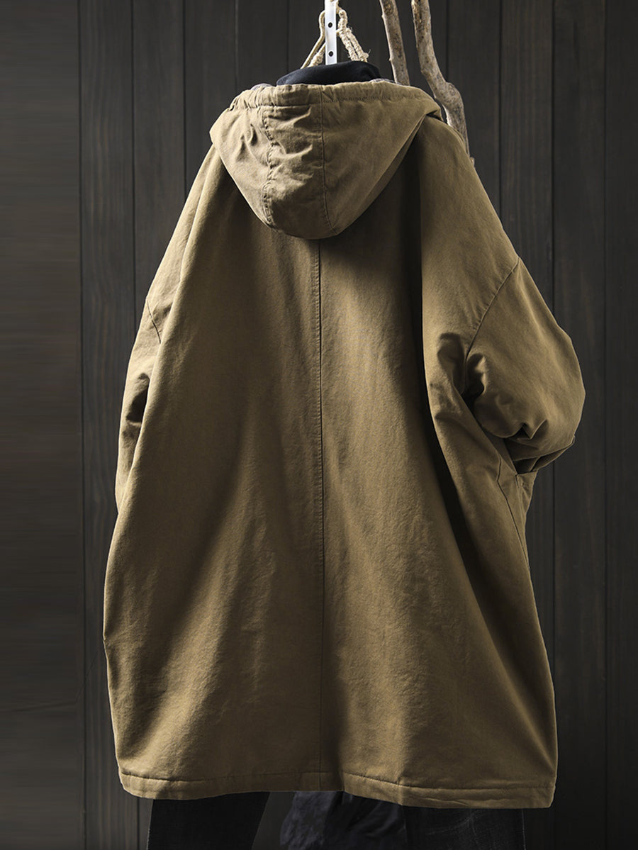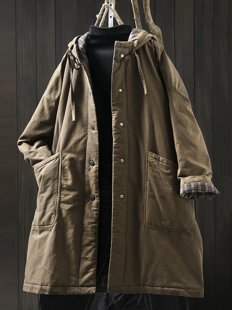 Plus Size Women Autumn Casual Pure Color Hooded Padded Coat