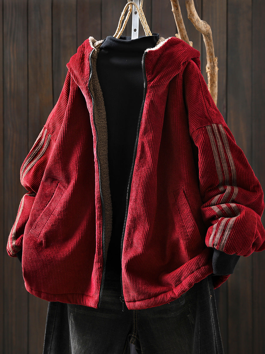 Women Autumn Retro Pure Color Hooded Fleece Coat
