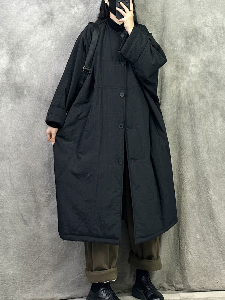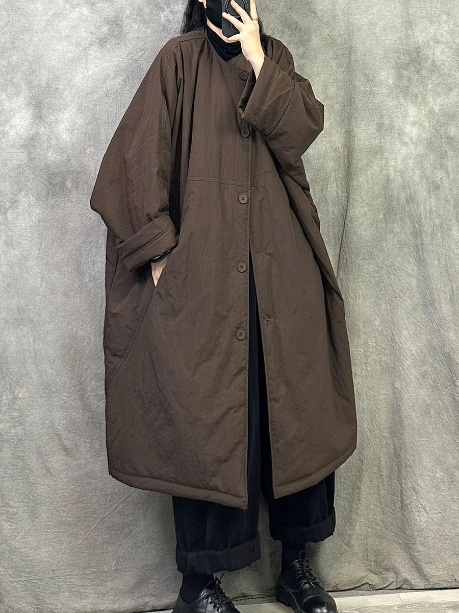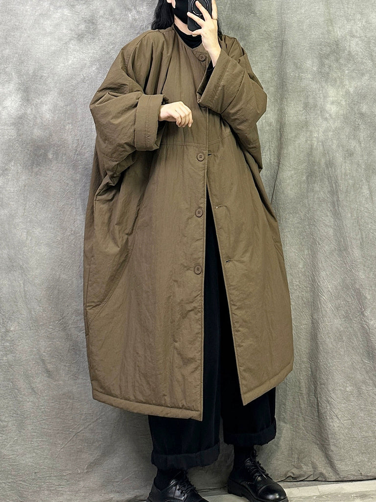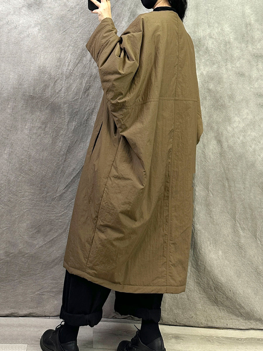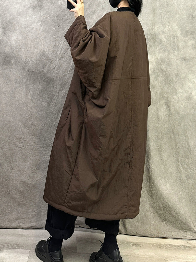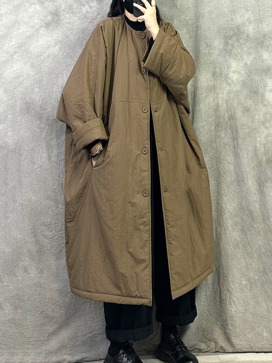 Women Winter Pure Color Padded O-Neck Coat