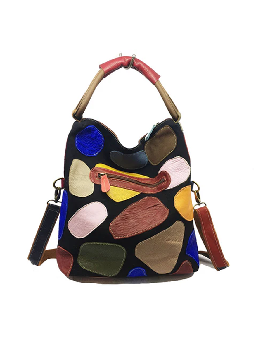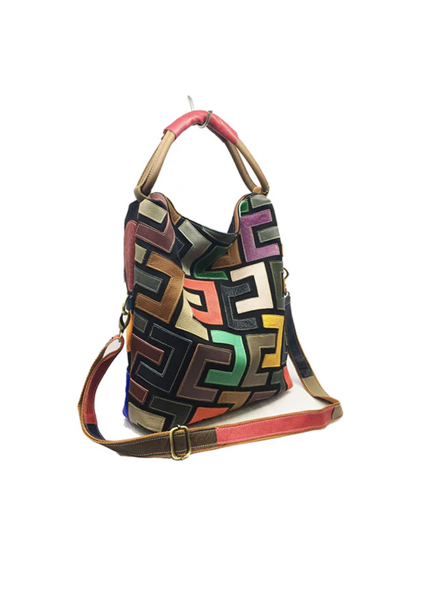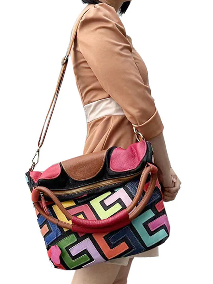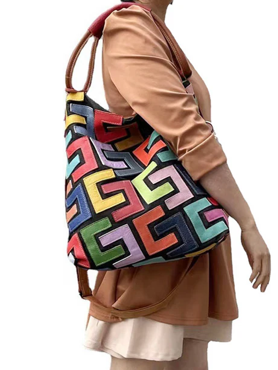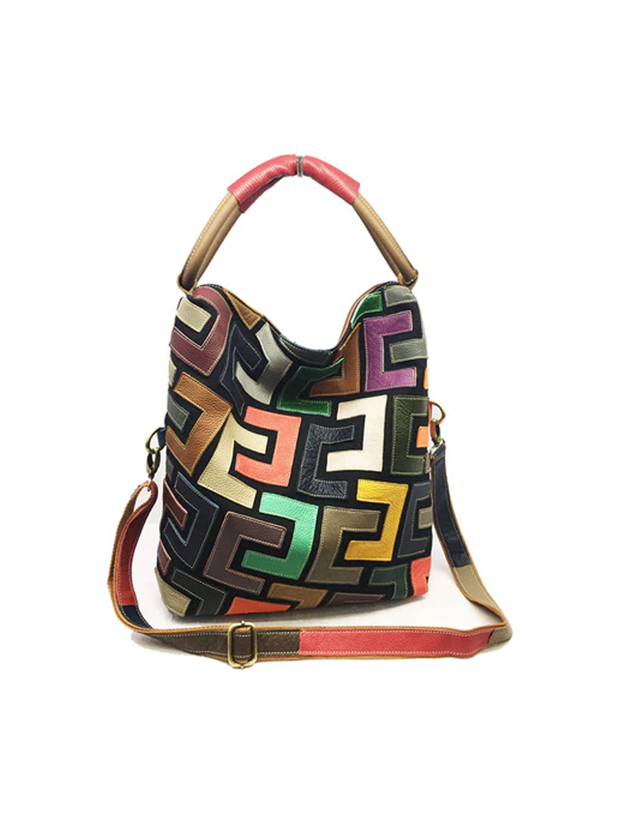 Multicolor Graphic Patchwork Leather Shoulder Bag