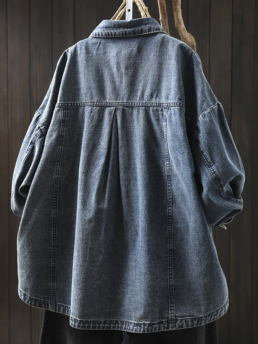 Plus Size Women Vintage Autumn Turn-down Collar Denim Shirt Coat