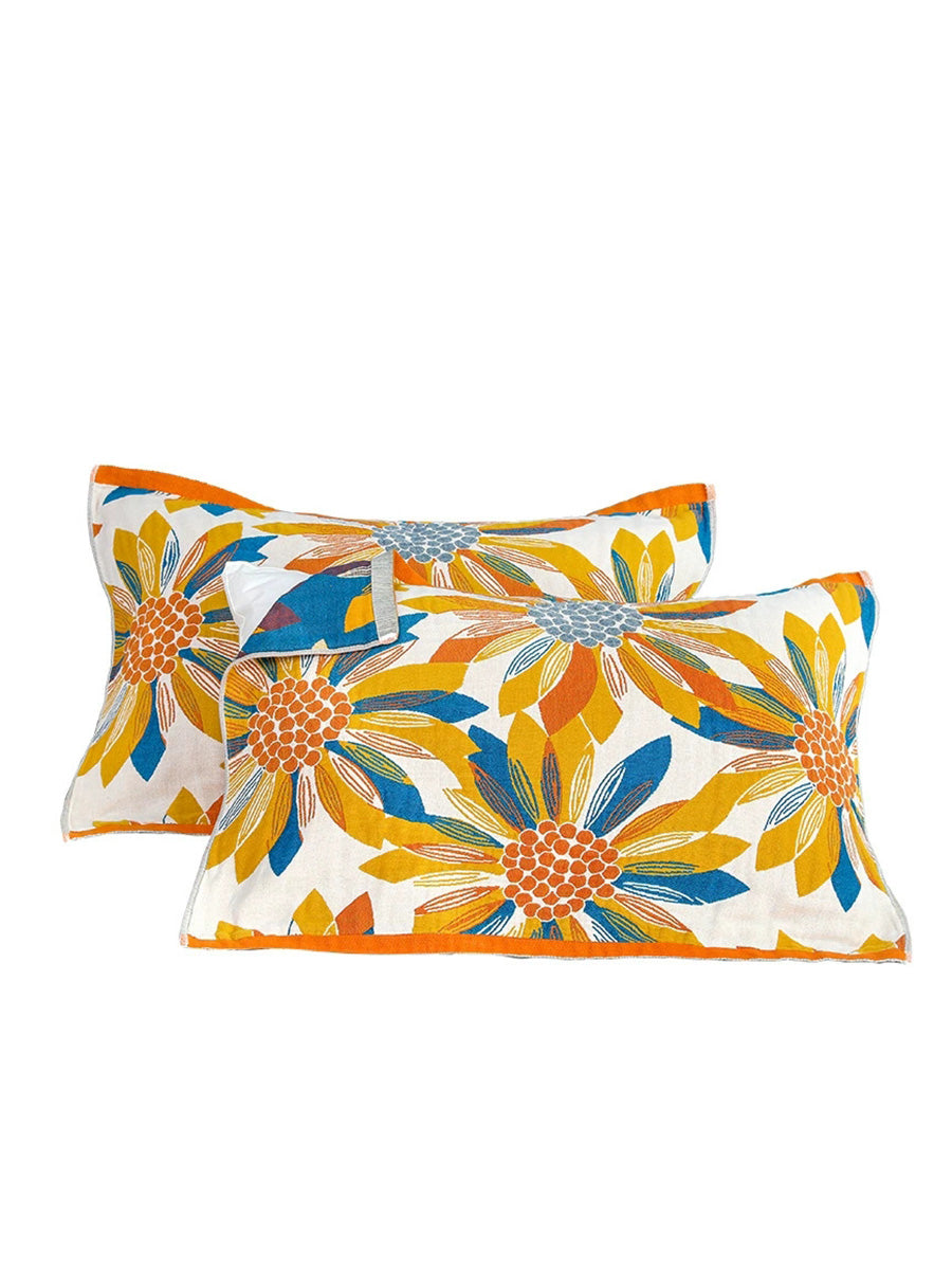 2 Pieces Cotton Sunflower Soft Sweat Absorbent Pillowcases