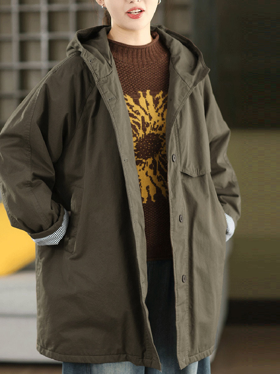 Women Winter Pure Color 100%Cotton Padded Hooded Coat