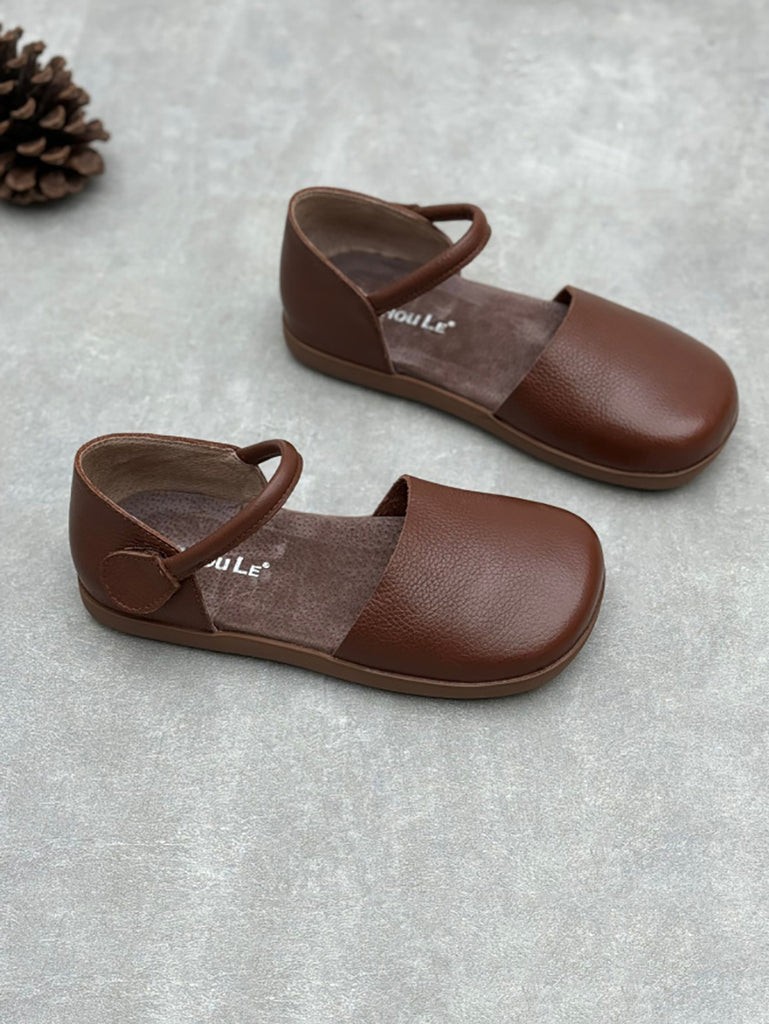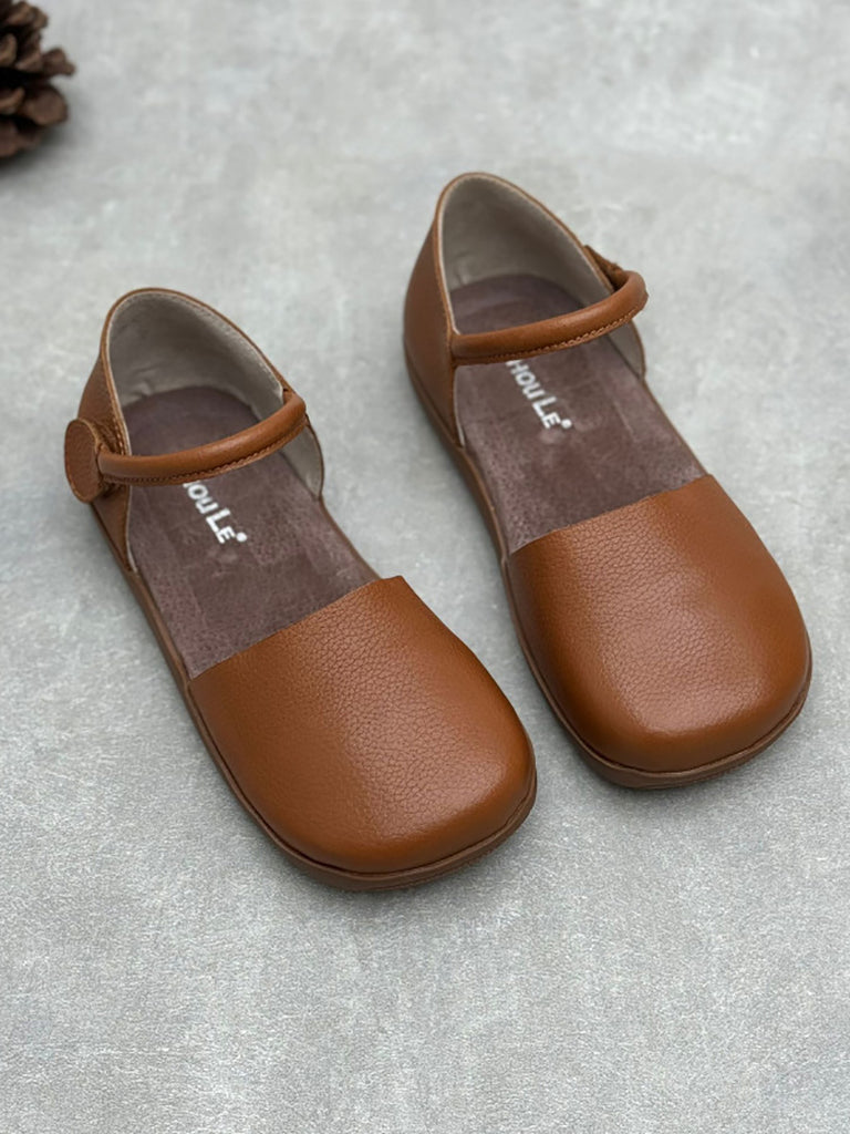 Women Spring Pure Color Genuine Leather Flat Shoes