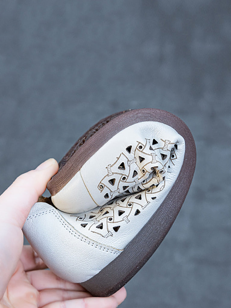 Women Summer Genuine Leather Hollow Out Low Heel Shoes