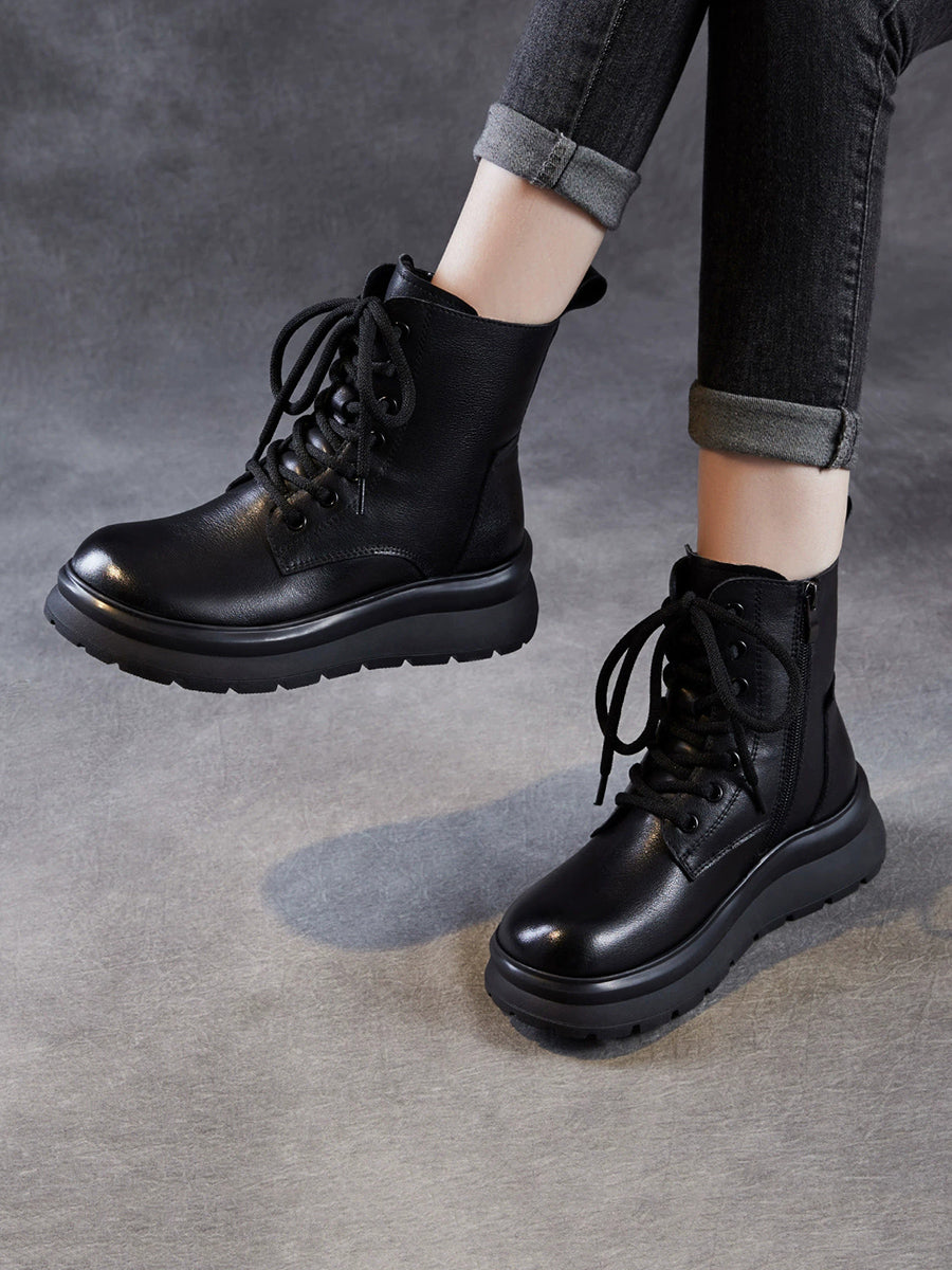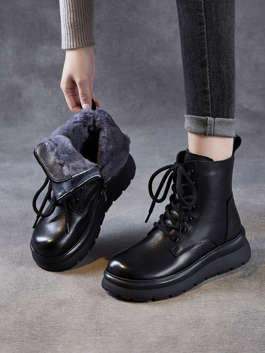 Women Winter Casual Genuine Leather Fleece-lined Boots