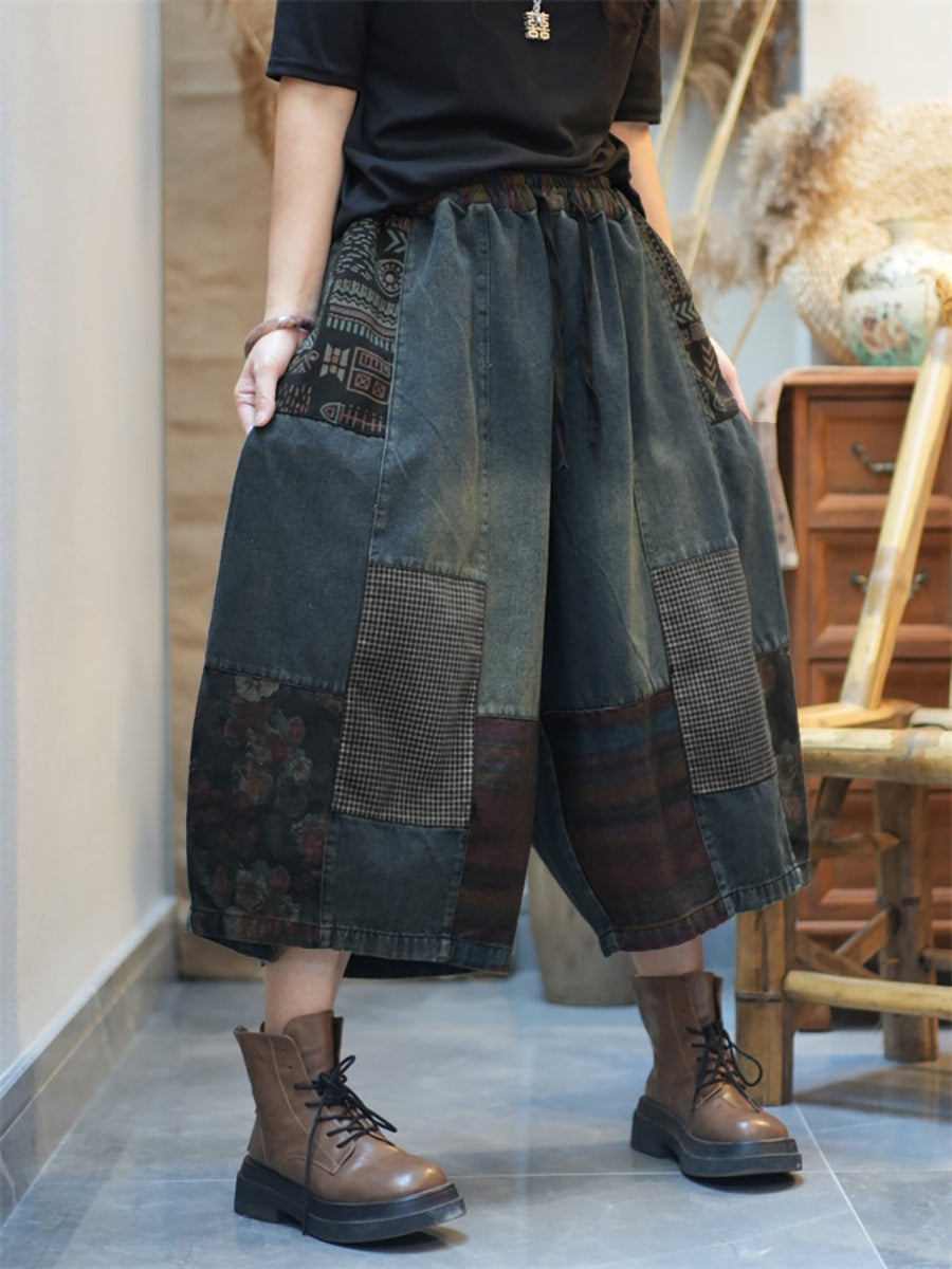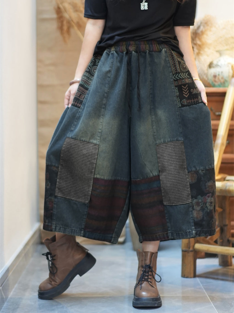 Crafted from a durable cotton material with a stylish patchwork design, these wide-leg pants are perfect for women who value comfort and fashion. The elastic waistband adds practicality to the vintage style of these pants, making them a versatile addition to any wardrobe.