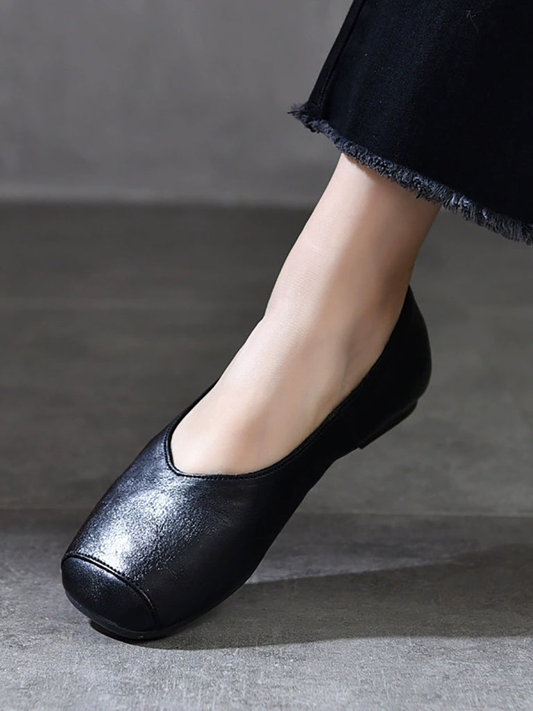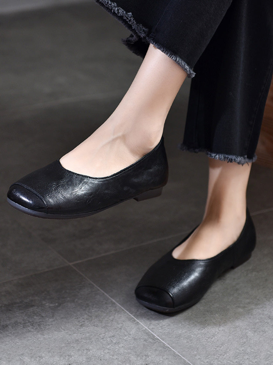 Women Casual Genuine Leather Soft Square Toe Shoes