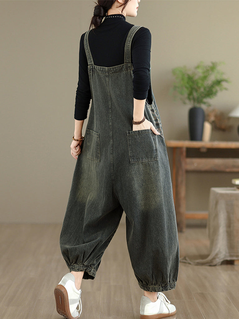 Women Autumn Casual Pure Color Denim Jumpsuits