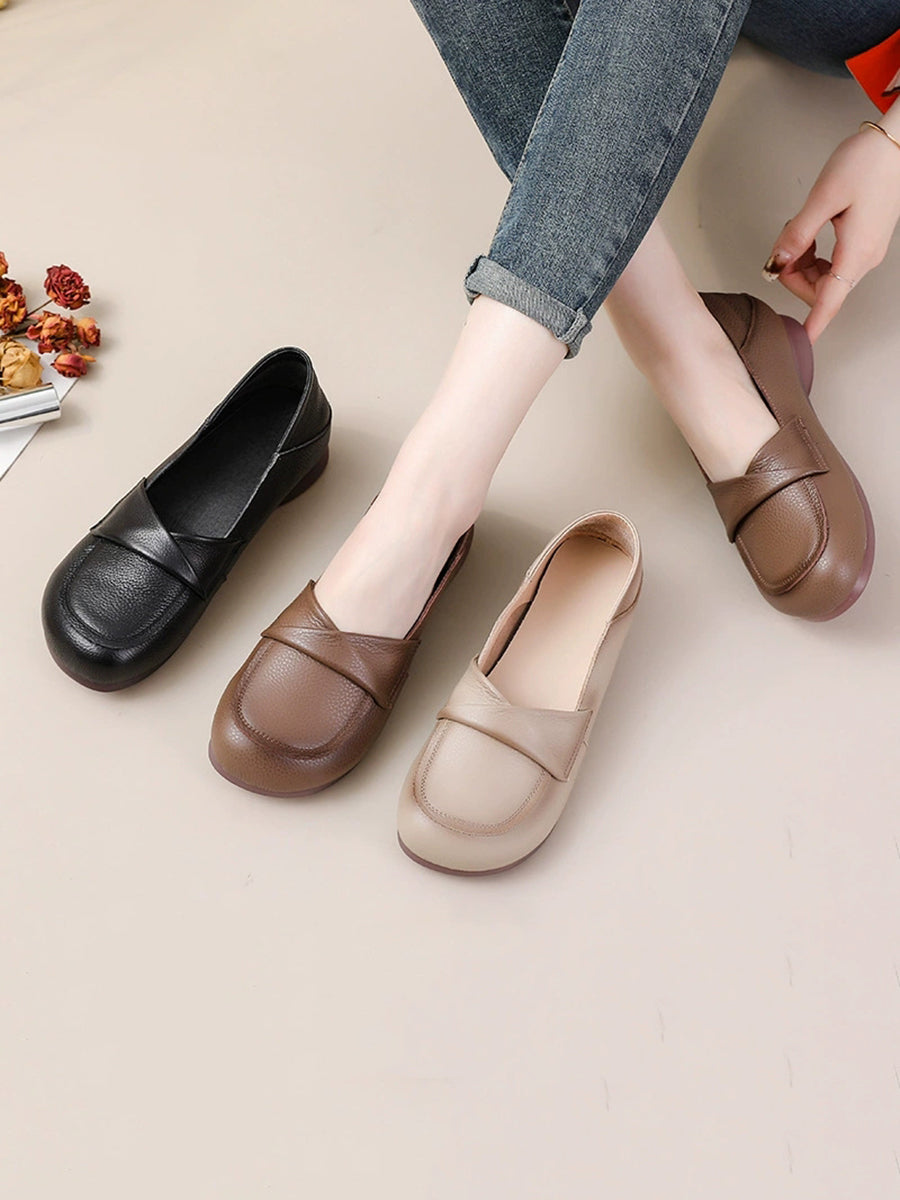 Women Spring Genuine Leather Spliced Low Heel Shoes