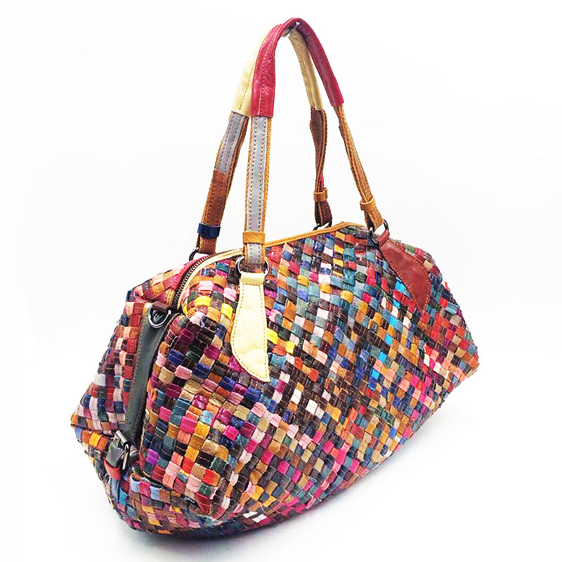 Multicolor Spliced Leather Handwoven Shoulder Bag