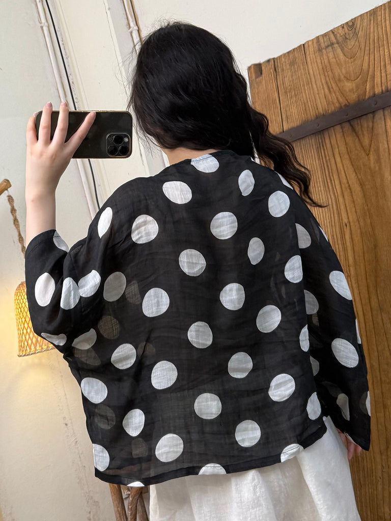 Women Summer Casual Dot O-Neck Ramie Shirt