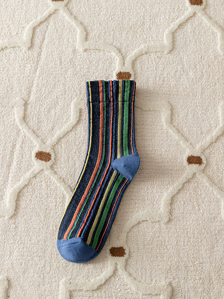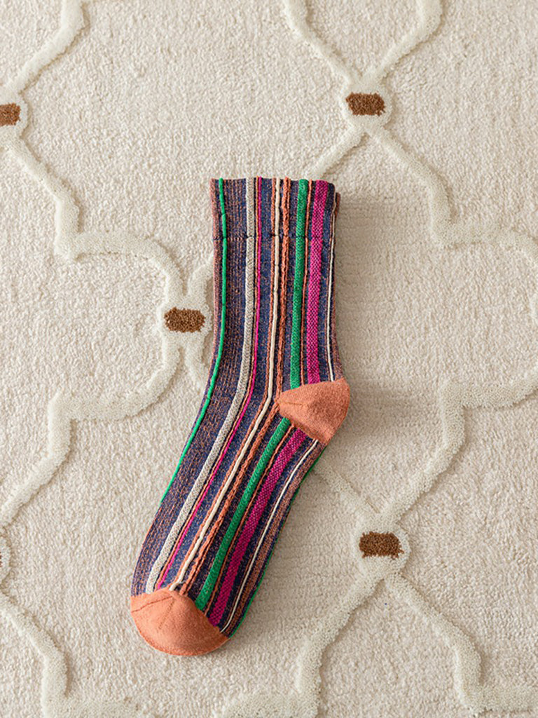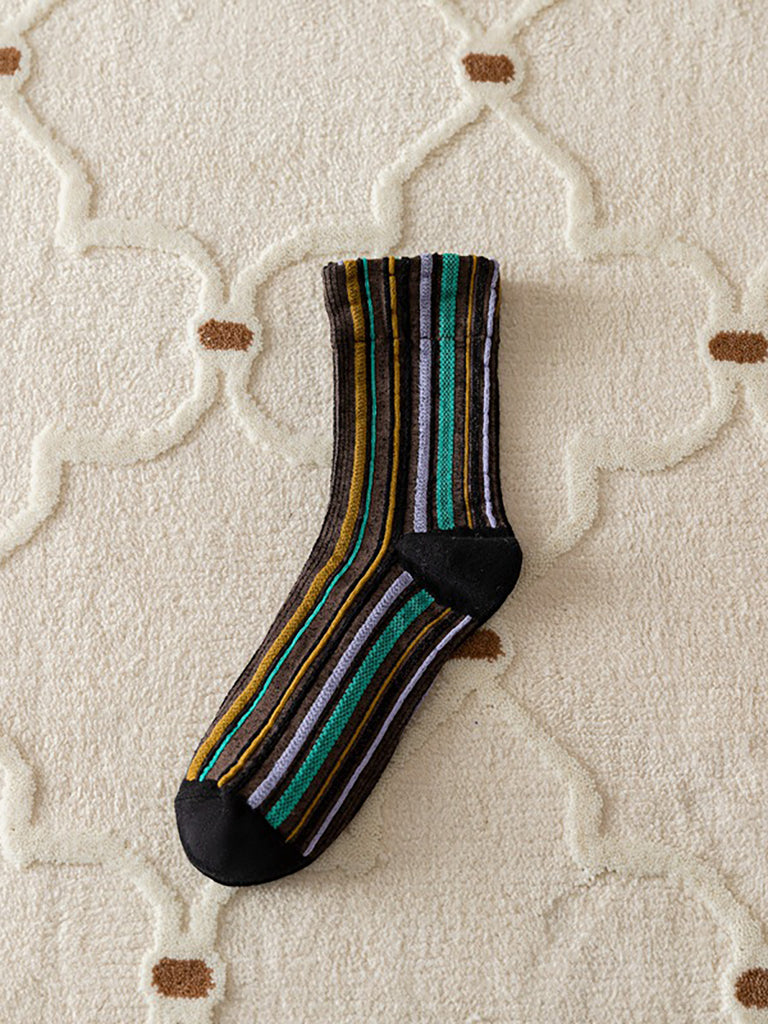 5 Pairs Stripe Adult Women Retro Autumn Winter Socks