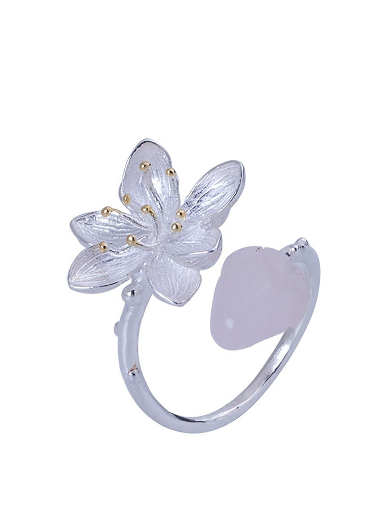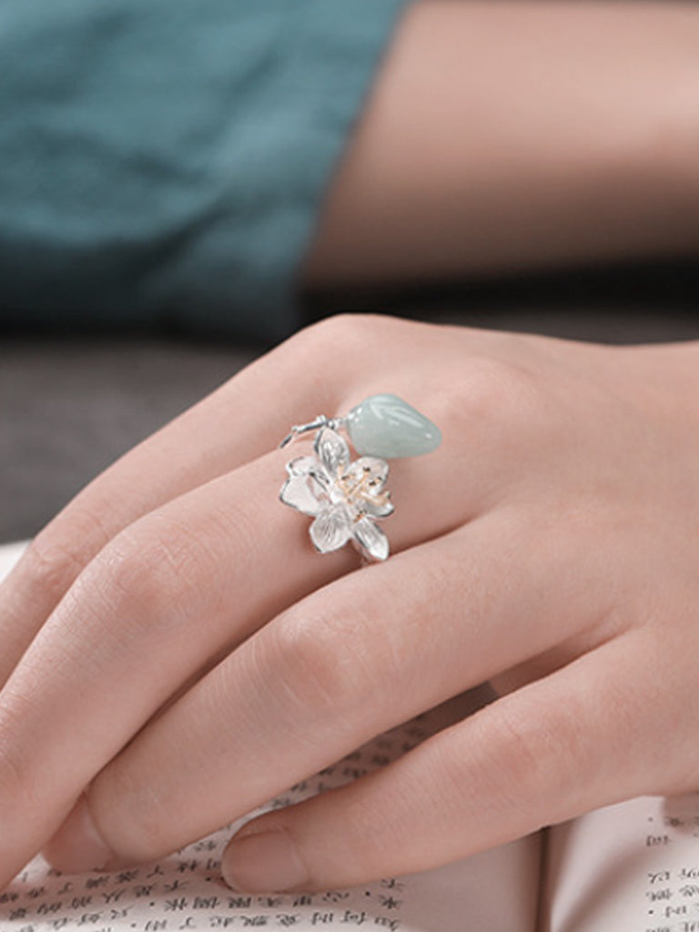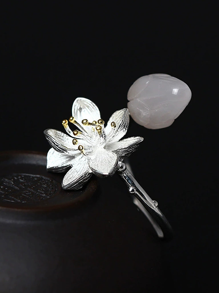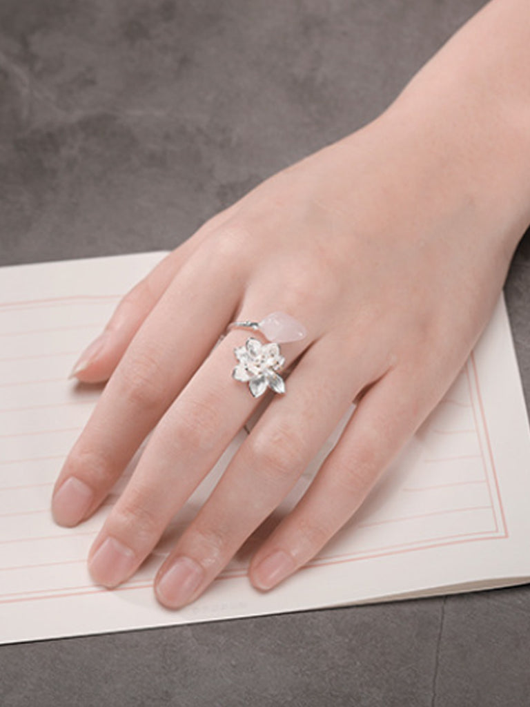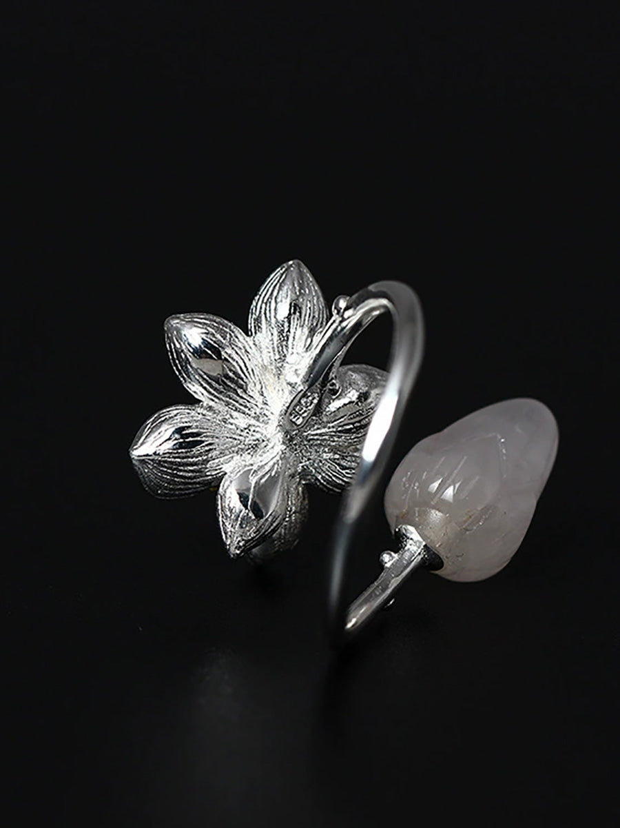 Women S925Silver Lotus Jade Adjustable Ring