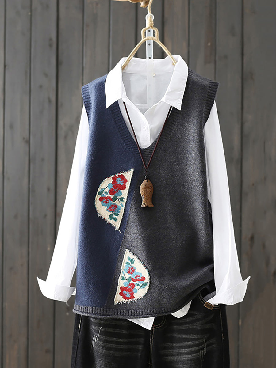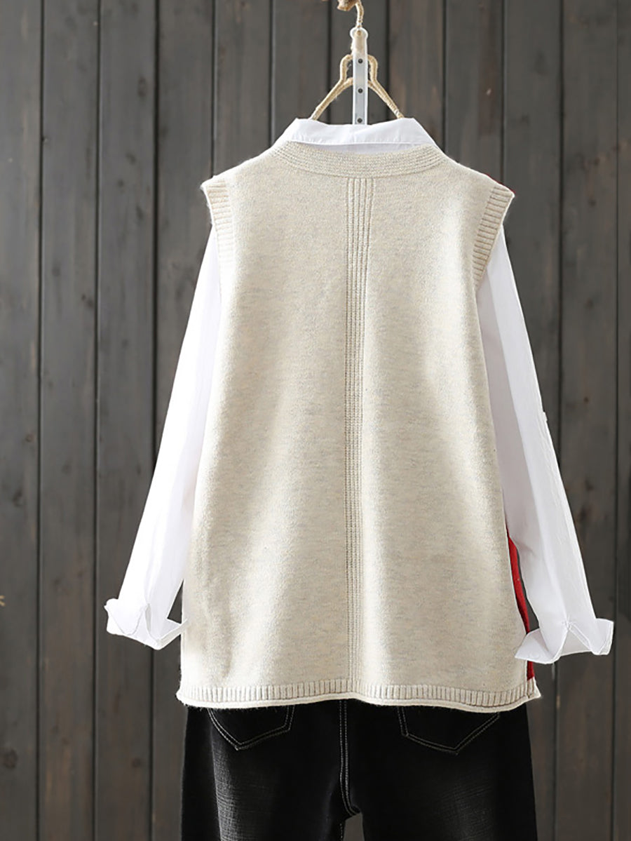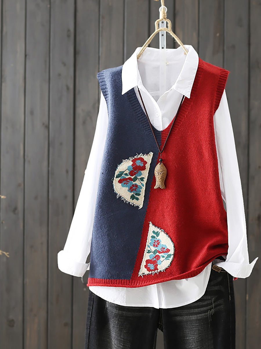 Women Autumn Artsy Colorblock V-Neck Knitted Vest
