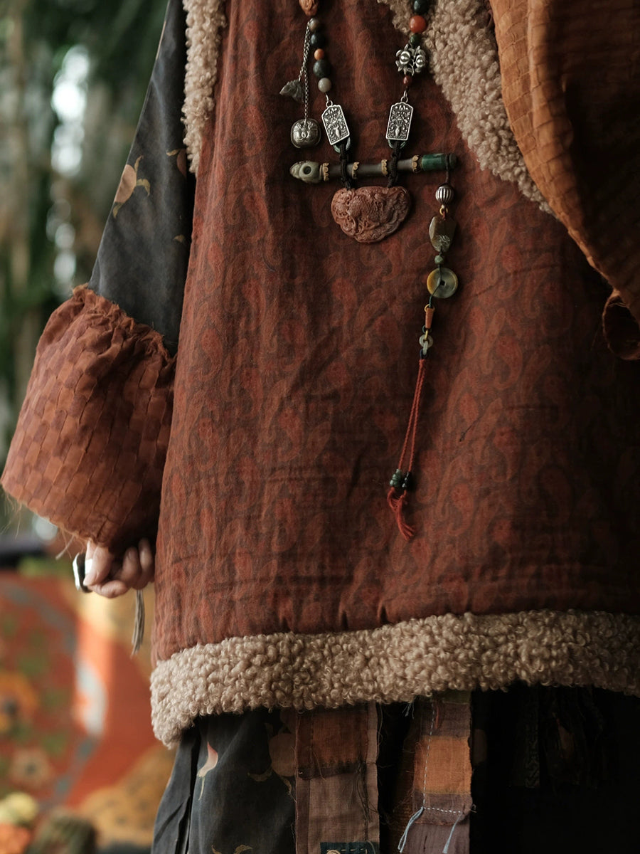 Crafted from premium cotton with a refined vintage aesthetic, this winter essential features a classic O-neck silhouette and strategic fleece splicing for enhanced warmth. The printed pattern adds distinctive character while the padded construction delivers superior insulation through autumn and winter months. A versatile layering piece that combines timeless design with functional comfort for the discerning wardrobe.