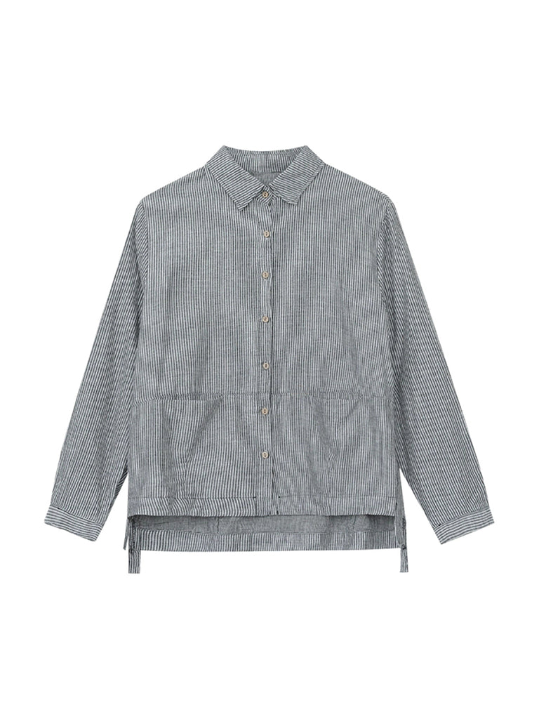 Plus Size Women Autumn Stripe Turn-down Collar Cotton Shirt