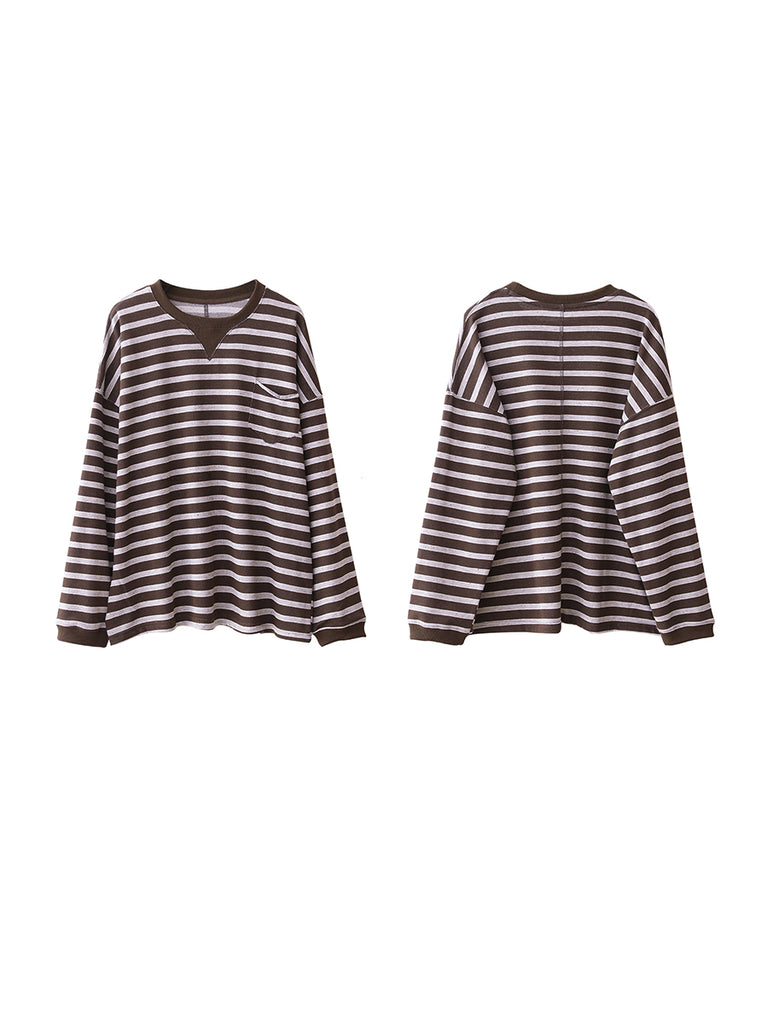 Women Autumn Casual Stripe O-Neck Blouse