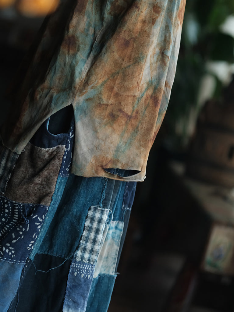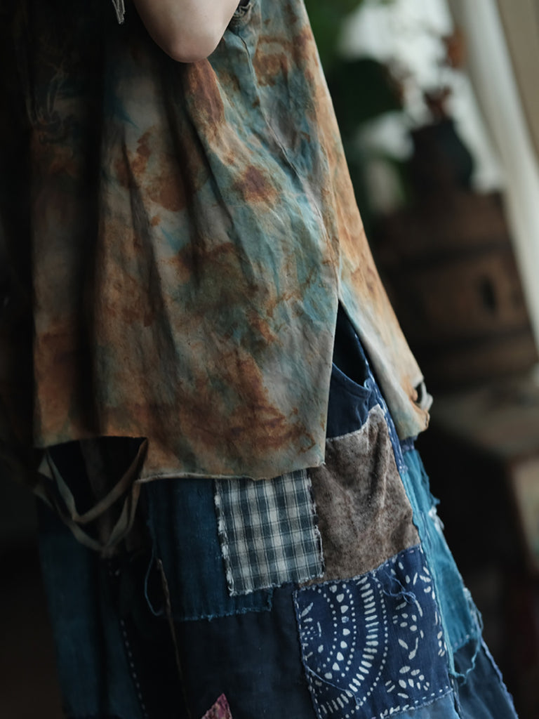 Women Summer Retro Tie-dye Frayed V-Neck Cotton Vest