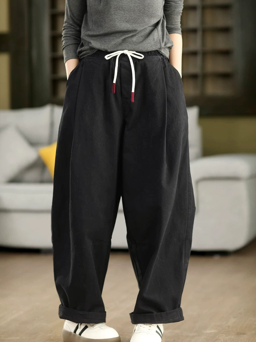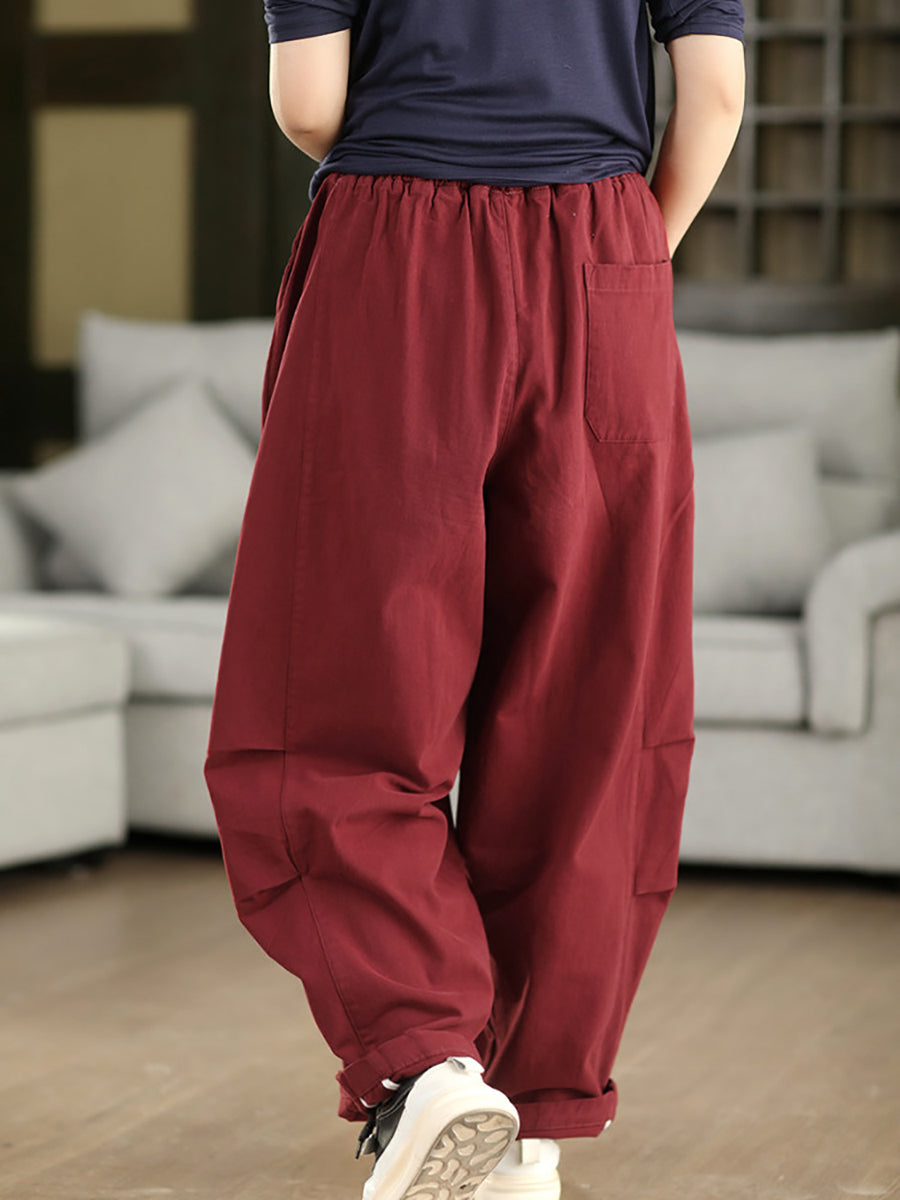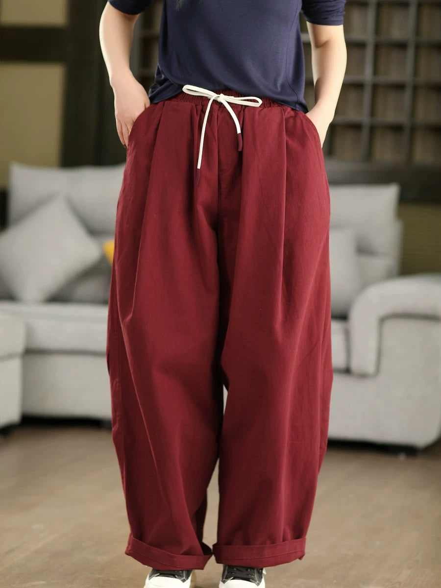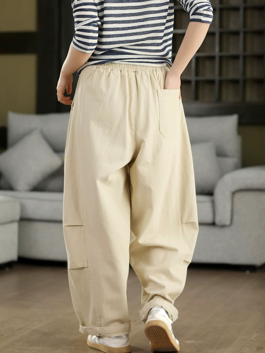 Women Spring Casual Pure Color 100%Cotton Harem Pants