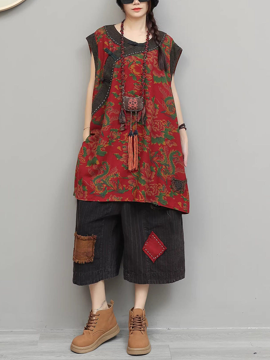 Women Summer Retro Flower Patchwork Suits