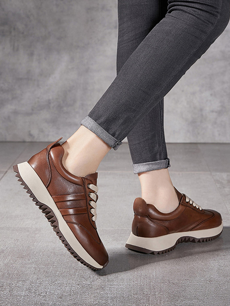 Women Autumn Casual Pure Color Leather Sport Shoes
