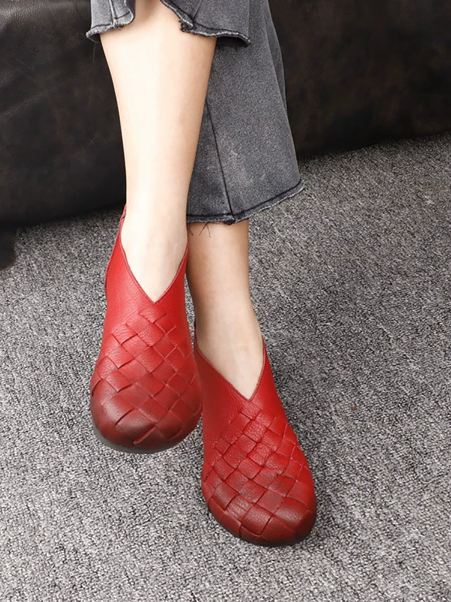 Women Vintage Genuine Leather Weave Low Heel Shoes