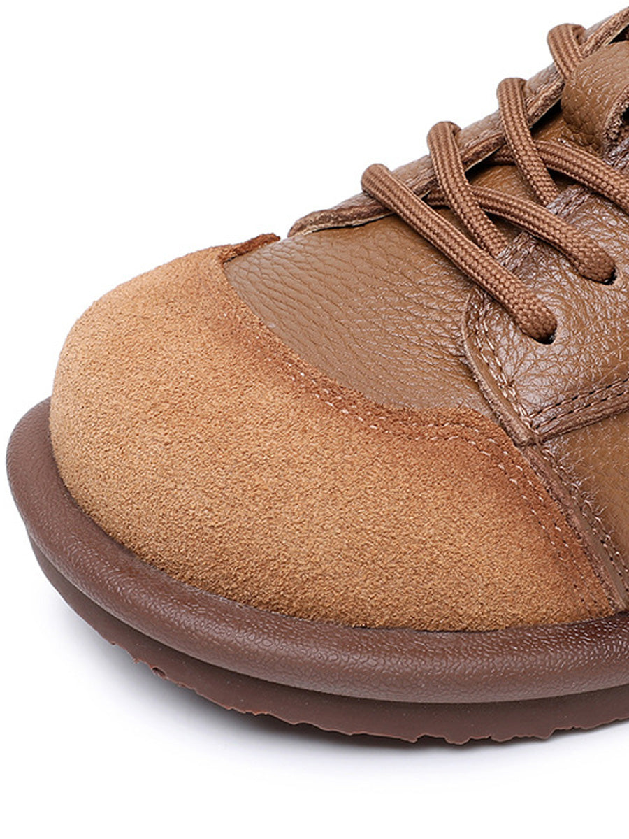 Women Vintage Leather Spliced Strap Flat Shoes