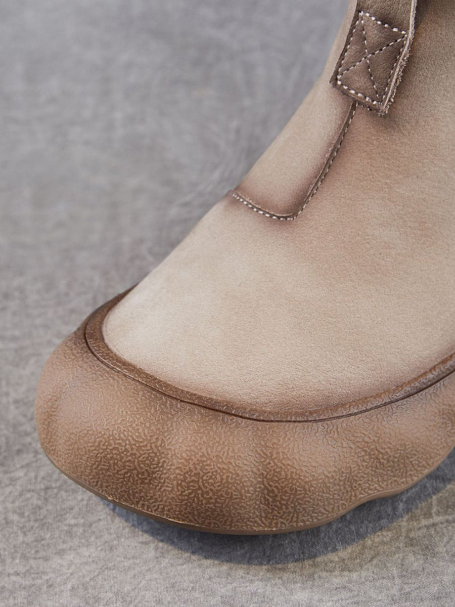 Women Winter Genuine Leather Back Zipper Flat Boots