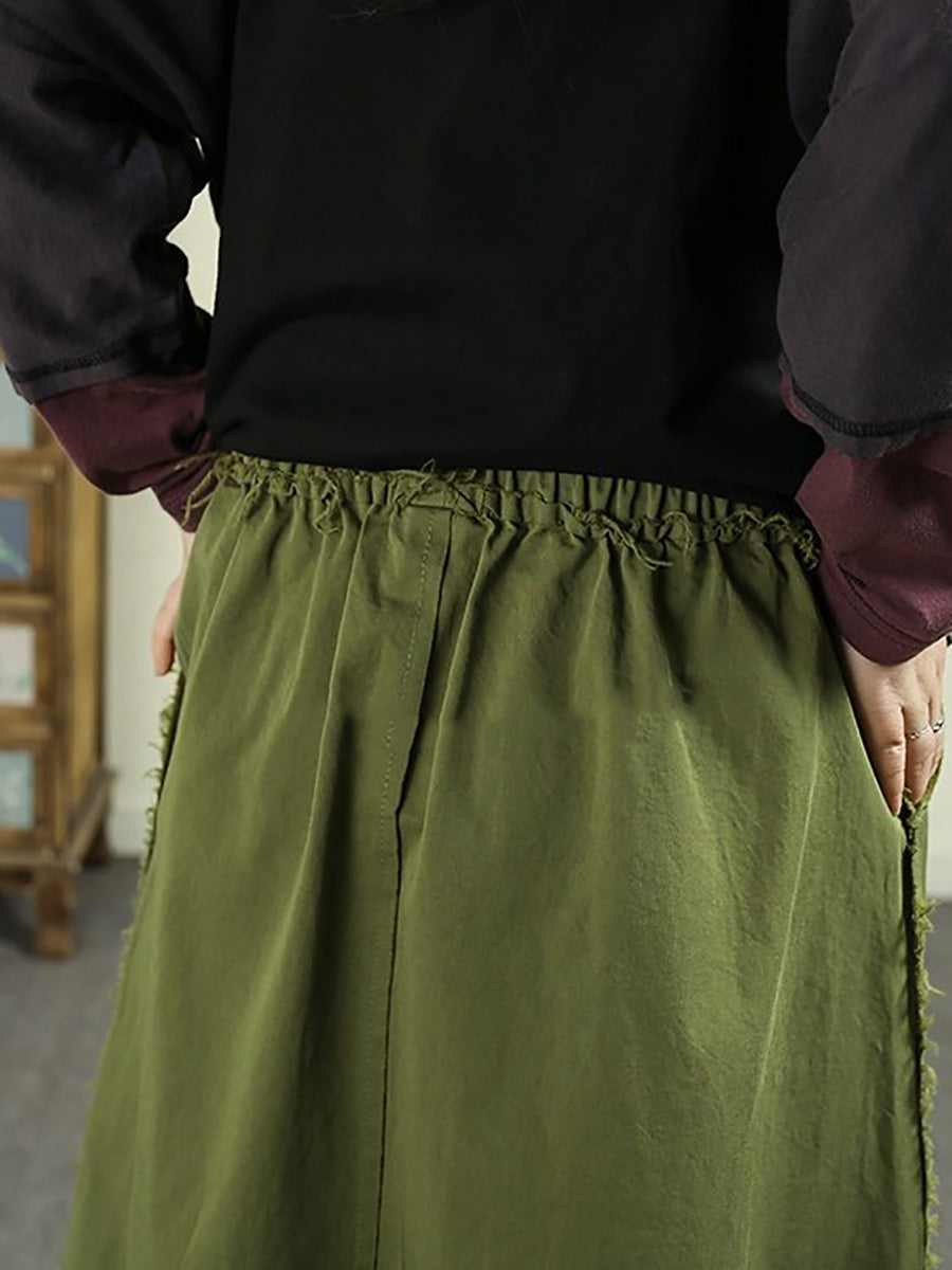 Women Spring Worn Patch 100%Cotton Bud Skirt